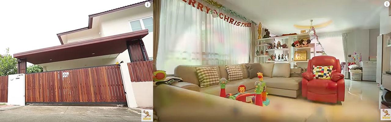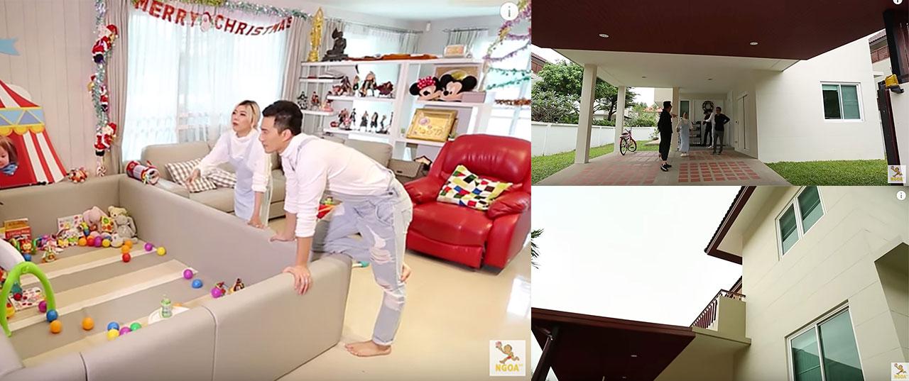 เราจะเห็นได้ว่าตัวบ้านค่อนข้างใหญ่ และสไตล์แบบหมู่บ้านจัดสรรรุ่นเก่า ไม่หวือหวาอะไร ภายในบ้านมีจุดเด่นคือ อาณาจักรของน้องเป่าเปาเท่าที่ทราบใช้บ่อยที่สุดในพื้นที่บ้าน เมื่อเปิดประตูบ้านเข้ามาแล้วเจอคอกสี่เหลี่ยมใหญ่ แต่งเต็มไปด้วยของเล่น และตุ๊กตา ที่คุณแม่กุ๊บกิ๊บและแฟนคลับสรรหามาให้เป่าเปานั่นเอง นอกจากคอกในบ้านแล้ว จุดสนามหญ้าหน้าบ้านกับสระว่ายน้ำขนาดกะทัดรัดยิ่งทำให้เป่าเปาร่าเริงเป็นพิเศษขึ้นอีกด้วย.