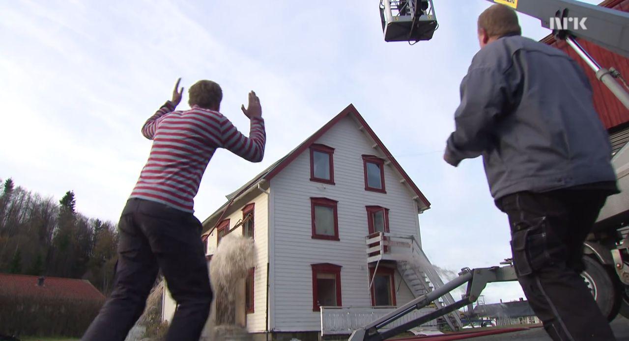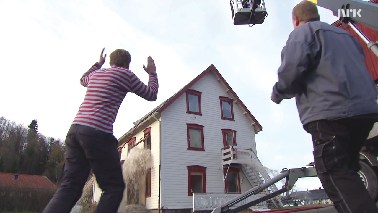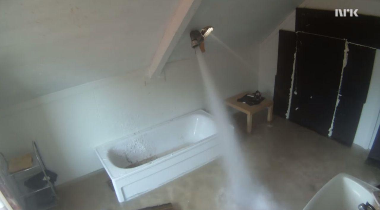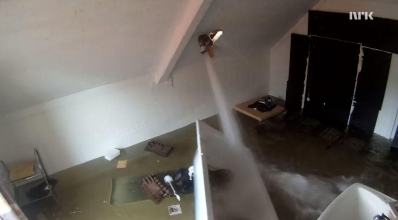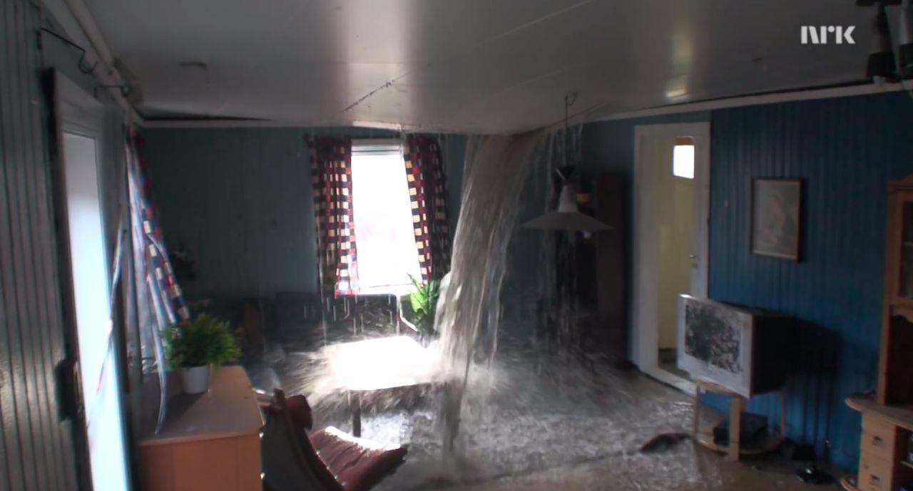 โดยคลิปนี้เป็นคลิปของ NRK มีชื่อว่า Collapsing floor by filling room with water (ยุบพื้นห้องด้วยการเติมน้ำ) เนื้อหาในคลิปมีใจความว่า มีหนุ่มชาวต่างชาติ 2 คน กำลังจ้องมองบ้าน ที่พวกเขาตั้งใจต่อสายน้ำไปยังชั้นบนสุดของบ้าน ก่อนจะเปิดน้ำเต็มแรง เพื่อให้น้ำเข้าบ้านอย่างเต็มที่ ท่ามกลางข้าวของที่ตั้งอยู่มากมาย ซึ่งชั้นบนสุด เป็นพื้นที่ของห้องน้ำ ขณะที่ชั้นล่าง เป็นพื้นที่ของห้องนั่งเล่น และก็มีอุปกรณ์เครื่องใช้อยู่ภายในห้องเช่นกัน