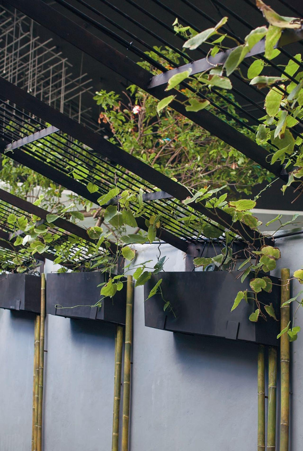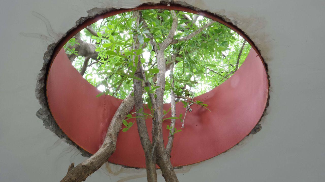 การออกแบบอาคารให้อยู่ร่วมกับหมู่แมกไม้ดั้งเดิมของพื้นที่เพื่อช่วยสร้างร่มเงาและบรรยากาศร่มรื่น ไม่ใช่เรื่องยากเพียงแค่รู้วิธี ทำได้ด้วยการออกแบบพื้นที่ให้มีช่องว่างรอบโคนต้น และเจาะช่องด้านบนให้กิ่งก้านต้นไม้สามารถทะลุขึ้นไปเหนือหลังคาได้ สิ่งที่ต้องคำนึงถึงคือระบบโครงสร้างของอาคาร จึงควรวัดขนาดและออกแบบไว้อย่างดีก่อนลงมือก่อสร้าง วัสดุที่ใช้ทำหลังคาสามารถใช้ได้ทั้งการเทสแล็บคอนกรีต หรือใช้กระเบื้องหรือเมทัลชีทเหมือนหลังคาทั่วไป