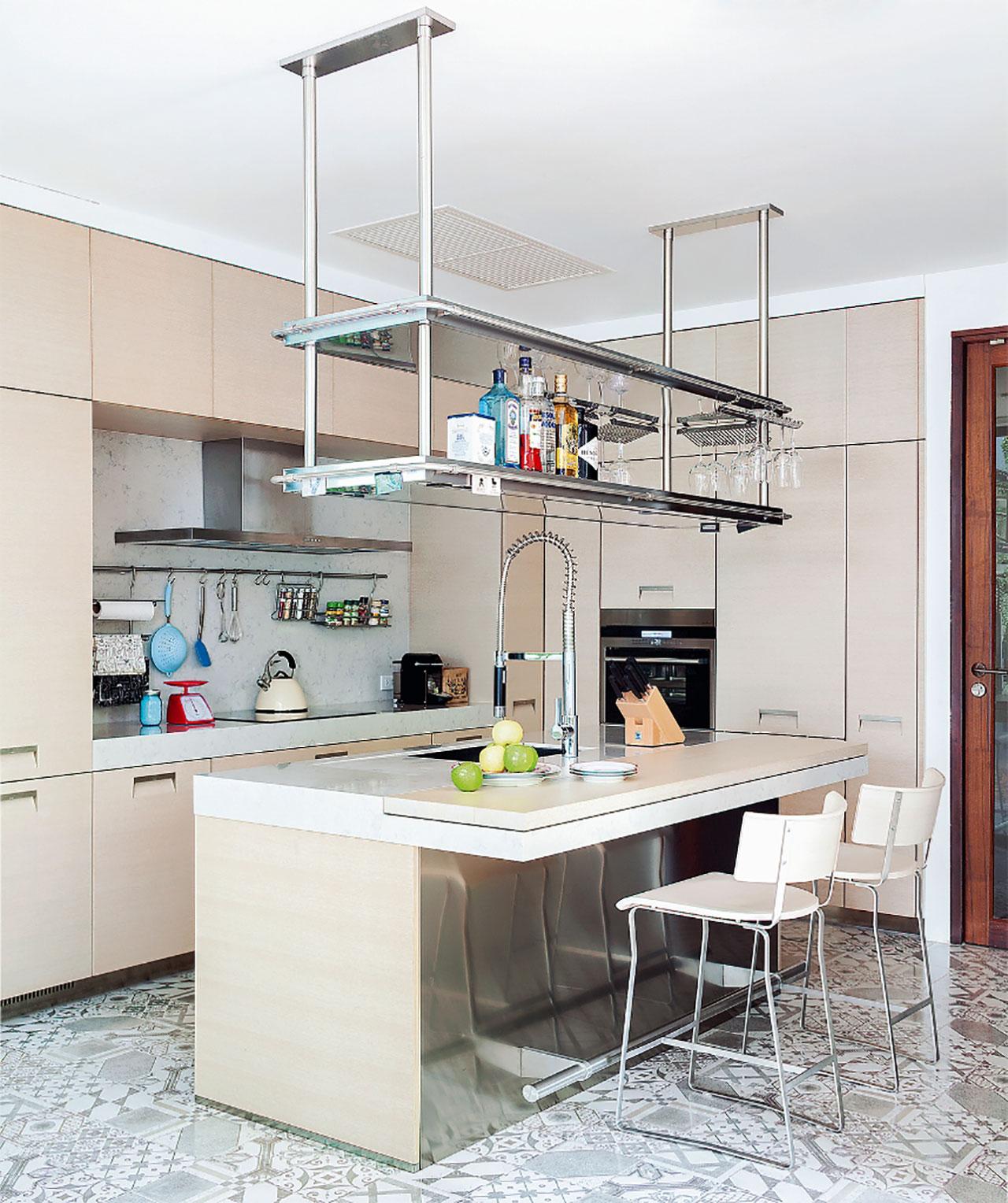แน่นอนว่าเคาน์เตอร์ครัวสมัยนี้ต้องเพิ่มไอส์แลนด์ไว้เพื่อให้ลูกๆ นั่งรับประทานอาหารเช้าหรือกรณีที่มีเพื่อนมานั่งจิบไวน์พูดคุยสบายๆ แต่สิ่งสำคัญที่สุดคือ ขนาดของเคาน์เตอร์ต้องปรับตามการใช้งาน หากใช้ครัวทำขนมหรืออาหารเป็นหลัก ความกว้างของเคาน์เตอร์ที่ใช้งานสะดวกที่สุดอยู่ที่ 80 - 85 เซนติเมตร ความสูง 1.10 เซนติเมตรอย่าลืมเว้นระยะกันเตะด้านล่างเคาน์เตอร์เพื่อความปลอดภัยด้วย 10บ้านคุณสรัสวดี คุปตพงศ์