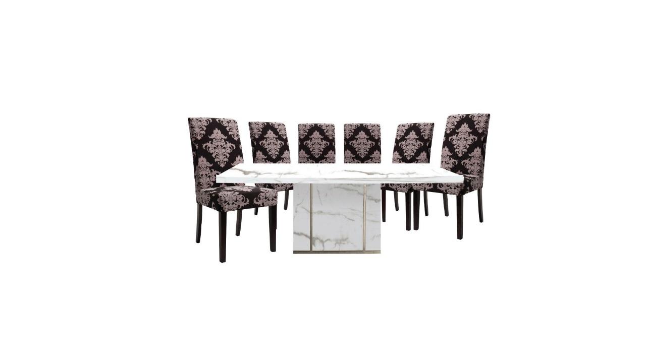 โต๊ะกินข้าว 6 ที่นั่ง index รุ่นมาซซินีวิคตอเรีย เป็นโต๊ะกินข้าว 6 ที่นั่ง หินอ่อน หรูหรา มาพร้อมกับเก้าอี้บุนวม 6 ตัว ขนาดโต๊ะ 200 x 100 x 75 เซนติเมตร เก้าอี้ 51 x 64 x 105 เซนติเมตร เหมาะสำหรับห้องกินข้าวที่มีพื้นที่กว้างขวาง สีสันโทนขาวสว่าง แข็งแรง ทนทาน อยู่คู่กับบ้านได้นาน ใครที่มองหา โต๊ะกินข้าว 6 ที่นั่ง มินิมอล ไม่ควรพลาด
