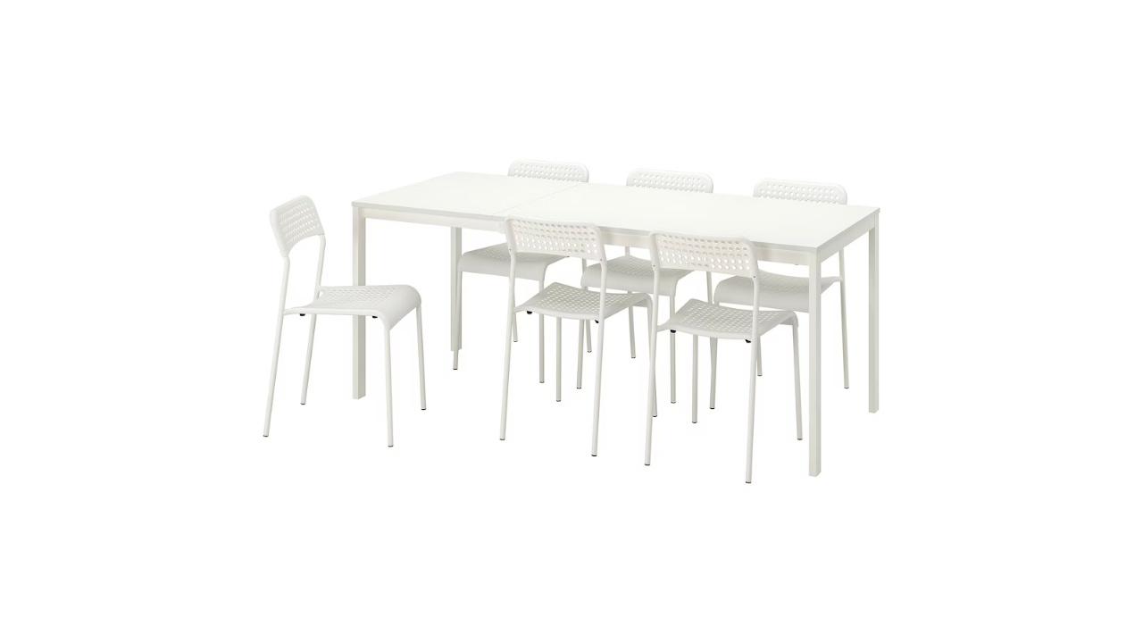 โต๊ะกินข้าว 6 ที่นั่ง IKEA รุ่นวองสต้า VANGSTA เป็นโต๊ะกินข้าวที่มาพร้อมกับเก้าอี้ 6 ตัว สามารถปรับความยาวของโต๊ะออกมาได้ ตอนยังไม่ยืด ยาว 120 เซนติเมตร แต่พอยืดออกมาจะยาว 180 เซนติเมตร เก็บแผ่นโต๊ะใต้ช่องที่ทำมาซ่อนสายตาได้ไม่เกะกะ ราคาเพียง 6,XXX บาท เท่านั้น ใครที่มองหาโต๊ะกินข้าว 6 ที่นั่ง สีขาวอยู่ ไม่ควรพลาด