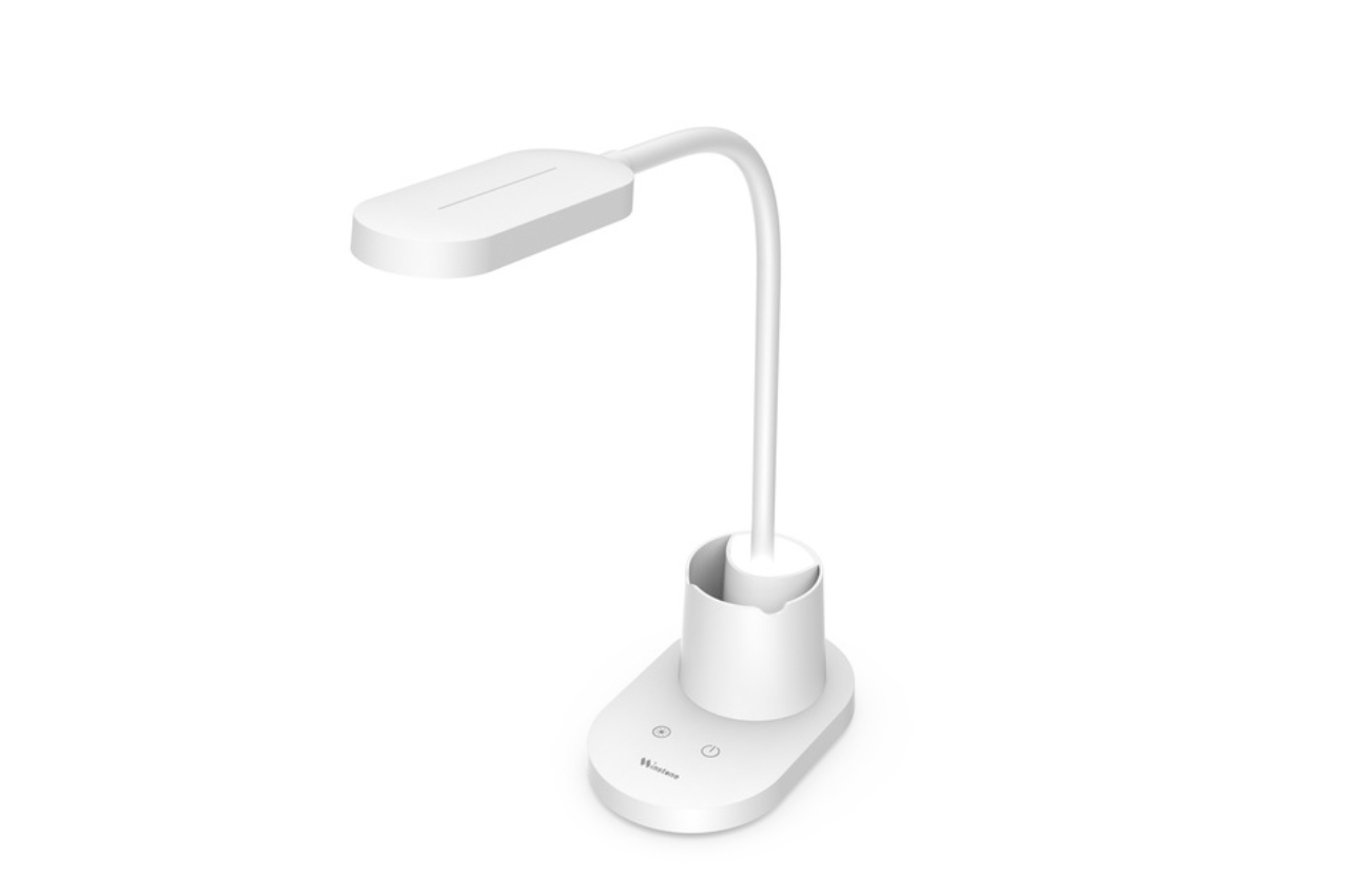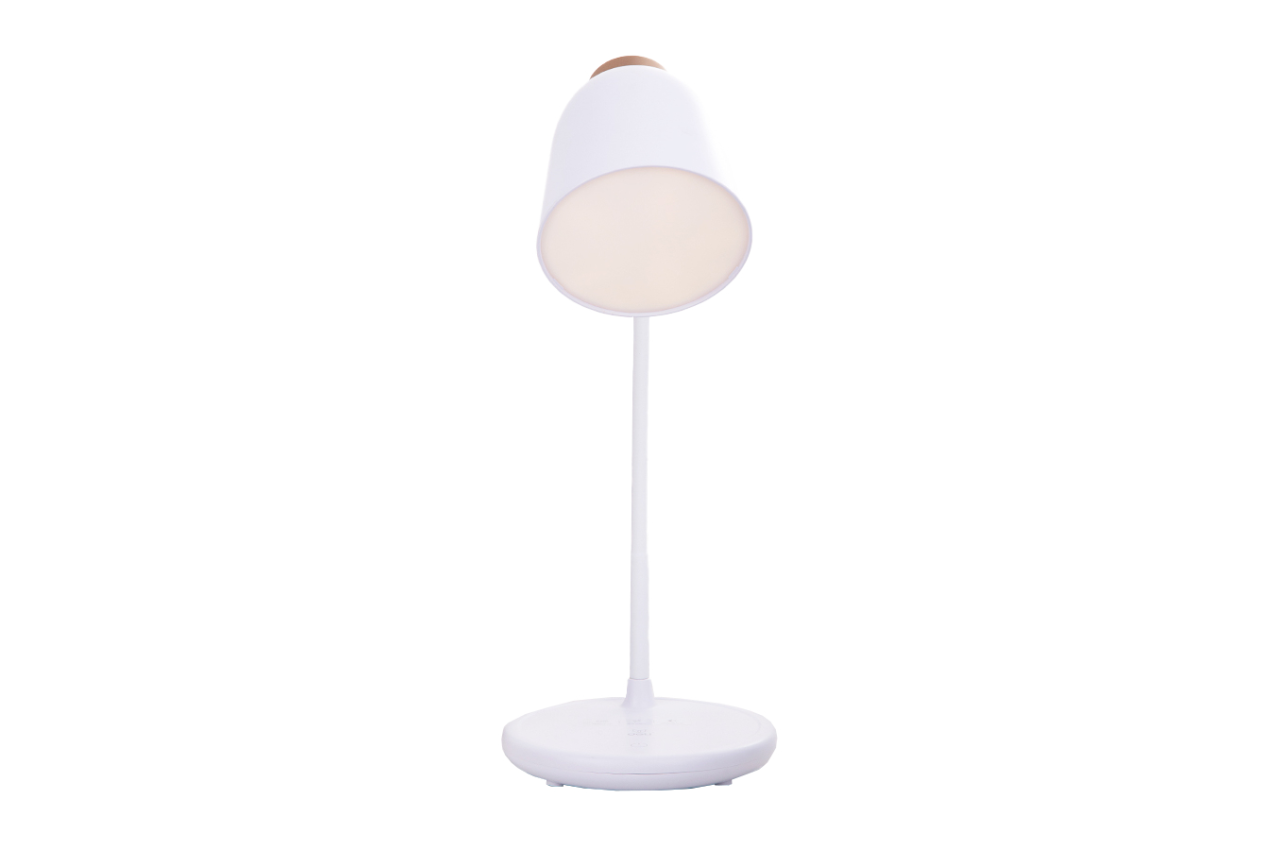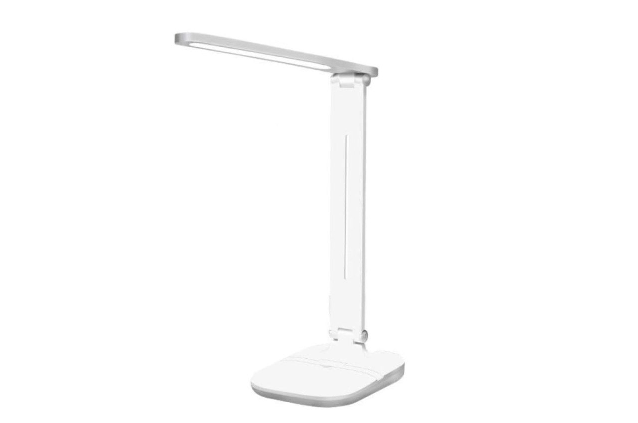 โคมไฟตั้งโต๊ะ โคมไฟอ่านหนังสือถนอมสายตา ยี่ห้อ Deli สามารถปรับอุณหภูมิแสงได้ 3 ระดับในปุ่มเดียว ตัวโคมไฟทำมาจากวัสดุ ABS น้ำหนักเบา คงทนแข็งแรง มีแบตเตอรีในตัว 1,200 mAh ชาร์จผ่านหัว USB ได้ หน้าหลอดไฟมีแผ่นกรองแสงที่ช่วยให้แสงมีความละมุน และถนอมสายตามากขึ้น