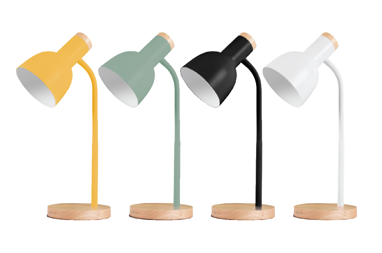 โคมไฟตั้งโต๊ะ LAMPTAN รุ่น Table Lamp Pastel โคมไฟอ่านหนังสือดีไซน์มินิมอล มาในโทนสีพาสเทลทั้ง 4 สี คือ สีเขียว สีเหลือง สีขาว และสีดำ สามารถปรับทิศทางแสงไฟได้ 360 องศา เหมาะสำหรับวางบนโต๊ะทำงาน หัวเตียง หรือในห้องนอนได้ มีไฟเป็นสีวอร์มไลต์ช่วยถนอมสายตาขณะใช้งาน แนะนำให้ใช้กับหลอดไฟขั้ว E27