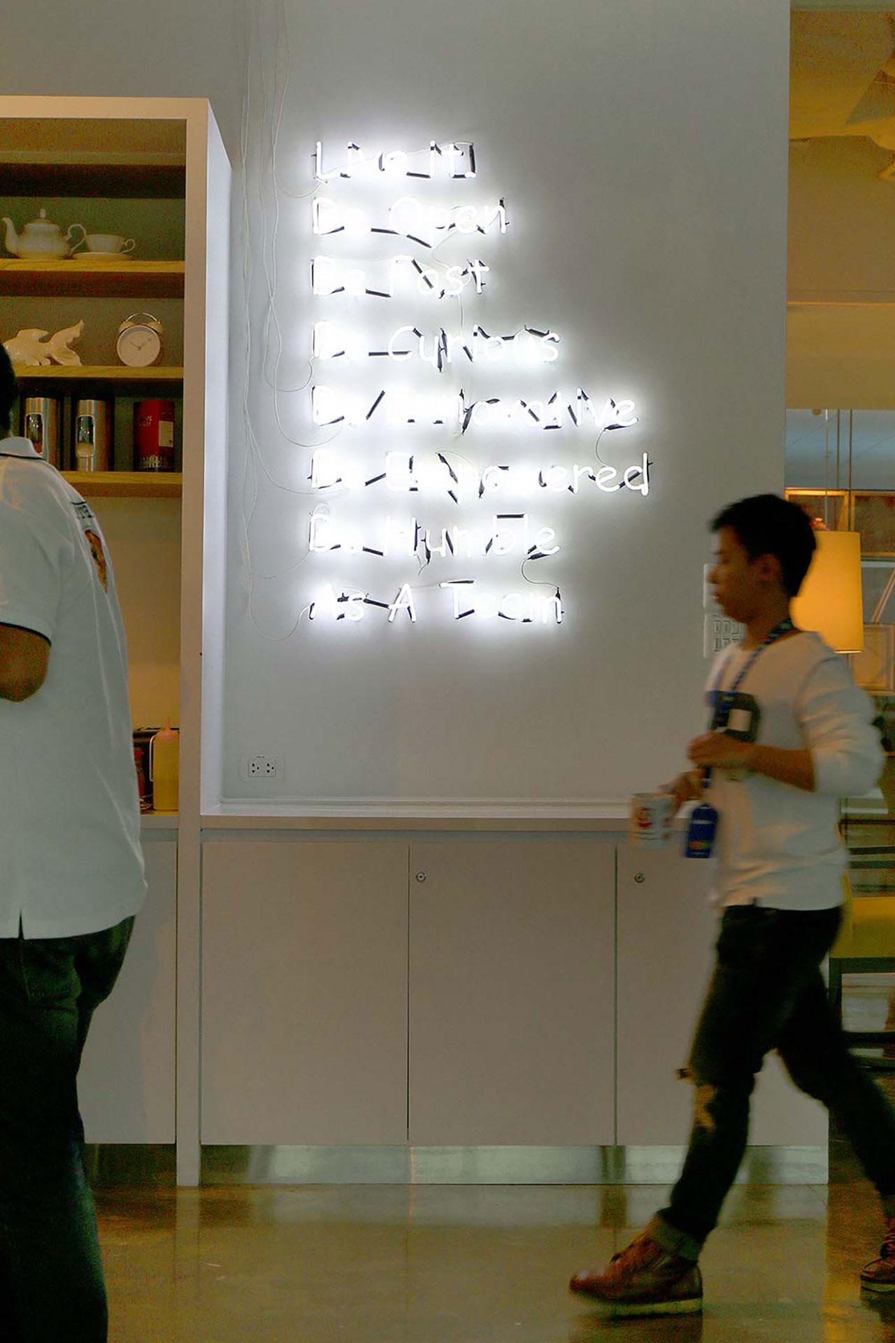 - สำนักงานแห่งนี้ แบ่งออกเป็น 3 ธีม ได้แก่ 1. โซนของมือสอง ที่นำเอาของมือสองมาตกแต่งไว้อย่างสวยงามเพื่อเป็นมุมพักผ่อน นั่งทำงาน หรือประชุมงานก็ยังได้ 2. Eat Work Play ตรงตัวตามความหมายก็คือ โซนสำหรับรับประทาน ทั้งอาหารหนัก อาหารว่าง เครื่องดื่ม มีพร้อมบริการครบ 3. โซนบันเทิง มีกิจกรรมให้ทำเพื่อผ่อนคลายสมองจากงาน เช่น โต๊ะปิงปอง ห้องเล่นเกม ห้องนอนก็ยังมี เอาสิ!