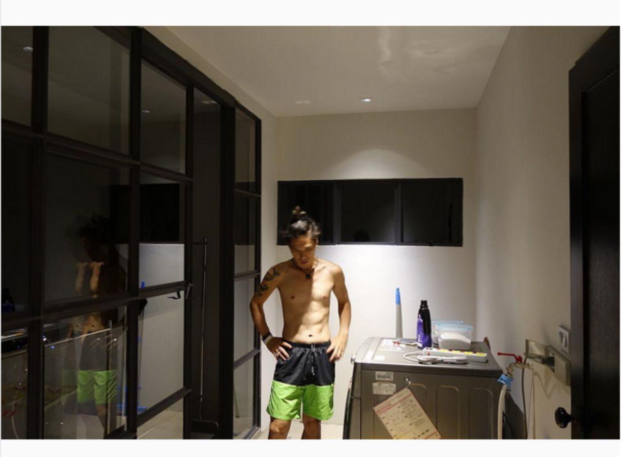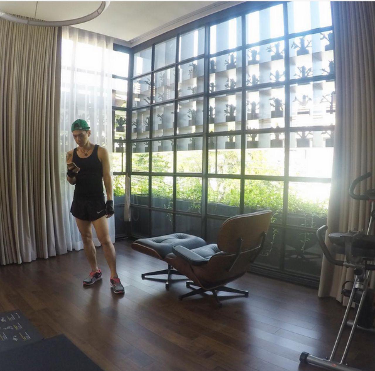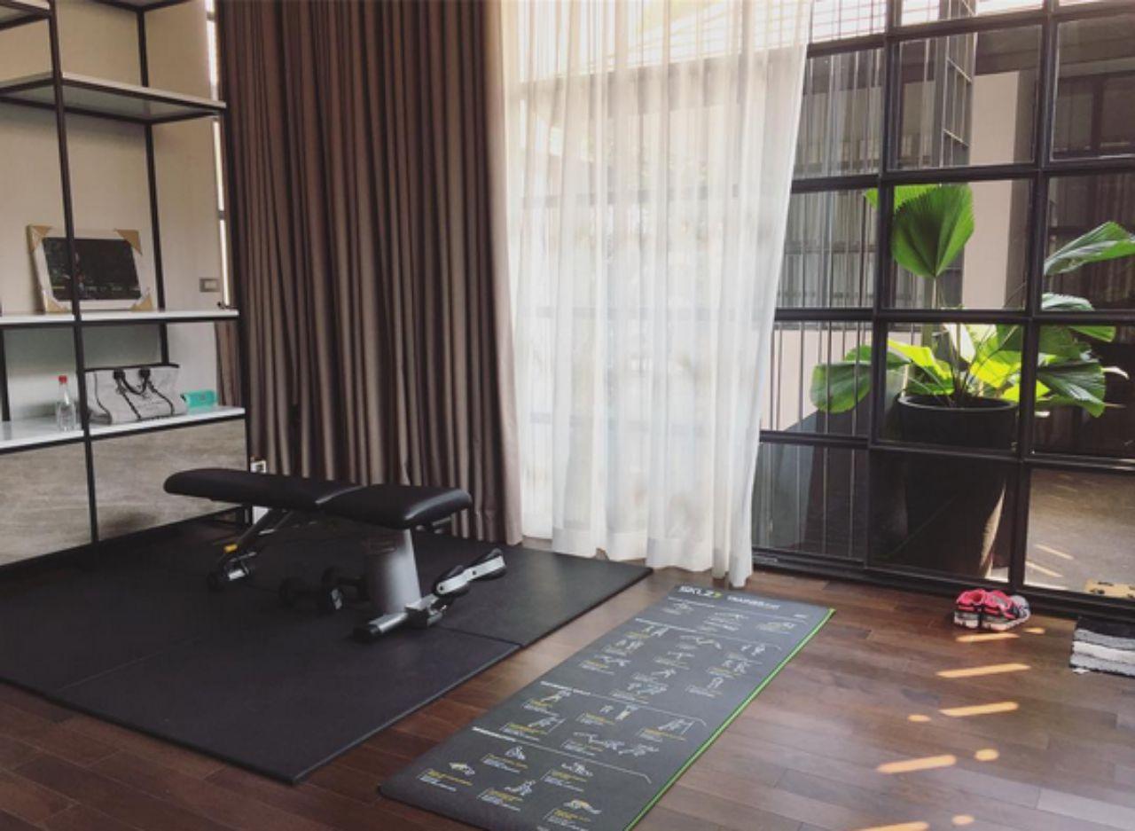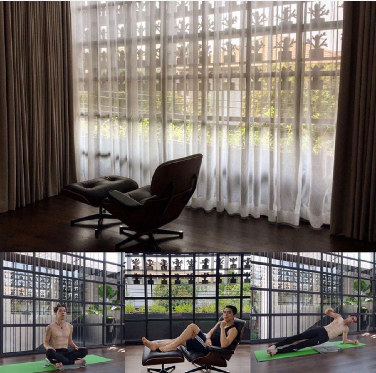 จากห้องนอน เชื่อมต่อมายังห้องออกกำลังกาย ที่มีทั้งดัมเบล ฟิตเนส โยคะ ซึ่งโจทย์ของห้องนี้คือออกกำลังกาย Body Weight แต่เห็นว่าล่าสุด ห้องนี้คือ ห้องกิจกรรม อ่านหนังสือ นั่งสมาธิ นั่งฟังเพลง ฟิตเนส เป็นห้องนอนจำเป็นของเอกกี้ไปแล้ว เพราะห้องนี้ชิลมาก เป็นห้องที่ไม่เหมือนใครในโลก