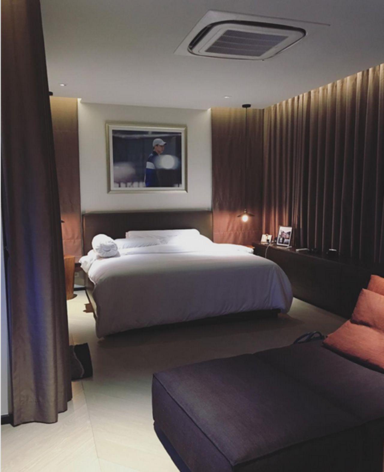 ห้องนอนที่ถูกทำเป็นเหมือน Penthouse สามารถเดินเชื่อมต่อไปยัง Walk-in closet และสตูดิโอ Fitness โดยเอกกี้บอกว่า เป็นห้องนอนที่แสนอบอุ่น โดยเขาตั้งใจเลือกรูปที่หัวเตียงเป็นรูปนี้ เพราะเป็นรูปที่มีความมุ่งมั่น ไม่ดูเหงาเศร้าสร้อยอ้อยอิ่ง และดูมีพลังที่กำลังพอดี เย็นตาเย็นใจไม่ร้อน เพราะฉะนั้นรูปนี้จึงลงตัวมากๆ กับห้องนอนเอกกี้
