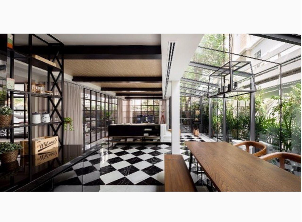 เป็นห้องที่เอกกี้นั่งบ่อยที่สุด เขาตั้งใจให้ออกแบบโดยให้แสงลอดเข้ามาได้โดยรอบ เพื่อให้สามารถมองออกไปเห็นบ่อน้ำใสๆ หรือบ่อปลา เห็นต้นไม้ ยิ่งในช่วงเช้า และร่มในช่วงบ่าย พื้นที่ส่วนนี้เหมาะแก่การจิบกาแฟเป็นที่สุด