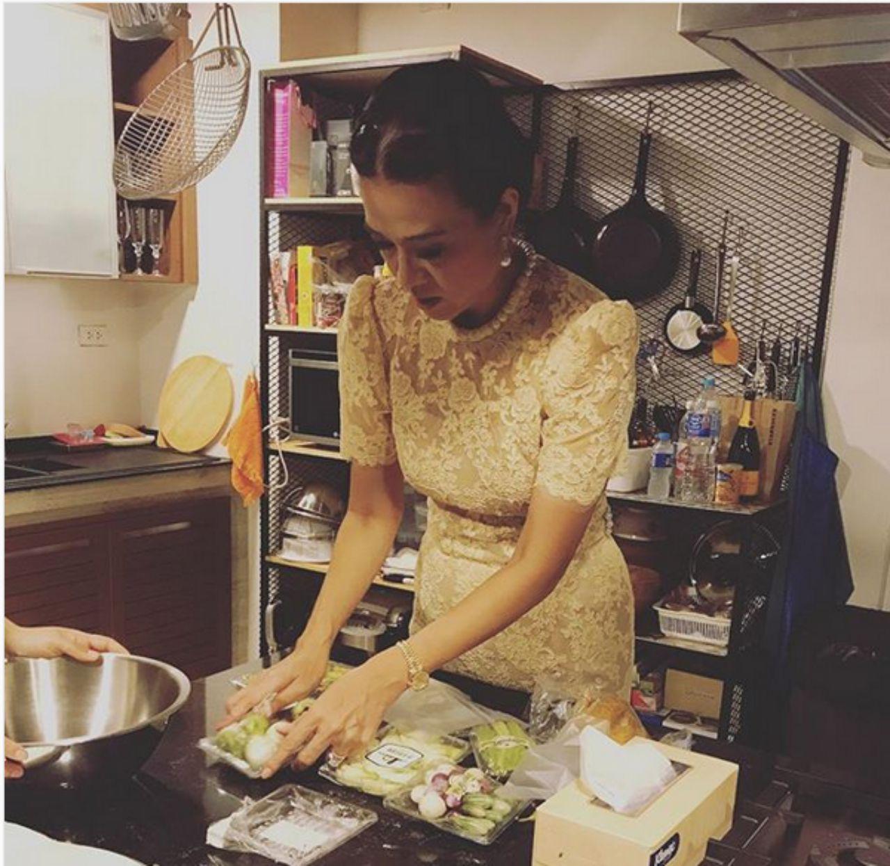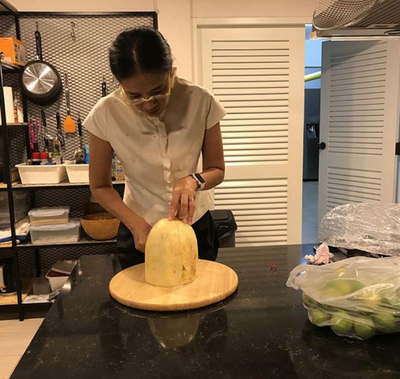 กับกิจกรรมแรกของวัน พี่กบเริ่มต้นด้วยการตักบาตร ทุกเช้าก็ต้องตระเตรียมอาหารในห้องครัว เพื่อไปใส่บาตรพระ เห็นแล้วอิ่มบุญตามเลย