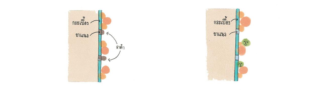 อุณหภูมิที่เพิ่มขึ้นระหว่างการอาบน้ำ ในแต่ละครั้งเป็นตัวกระตุ้นให้เกิด เชื้อราเพิ่มมากขึ้นเรื่อยๆ กลายเป็น คราบราสีดำเกาะติดบริเวณยาแนว