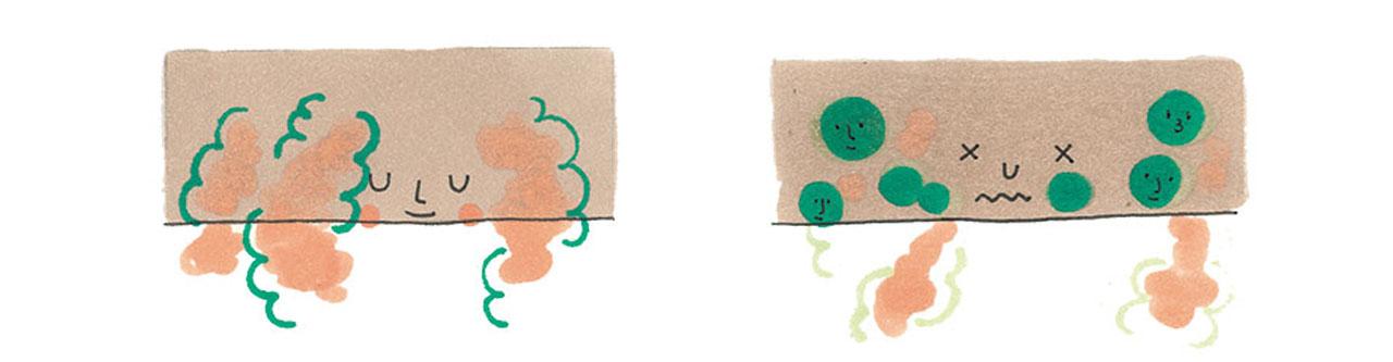 ไขสบู่และคราบไคลจากการอาบน้ำ เกาะติดบริเวณกระเบื้องและยาแนว เป็นแหล่งเพาะพันธุ์ชั้นดีของ สปอร์เชื้อราเลยละค่ะ