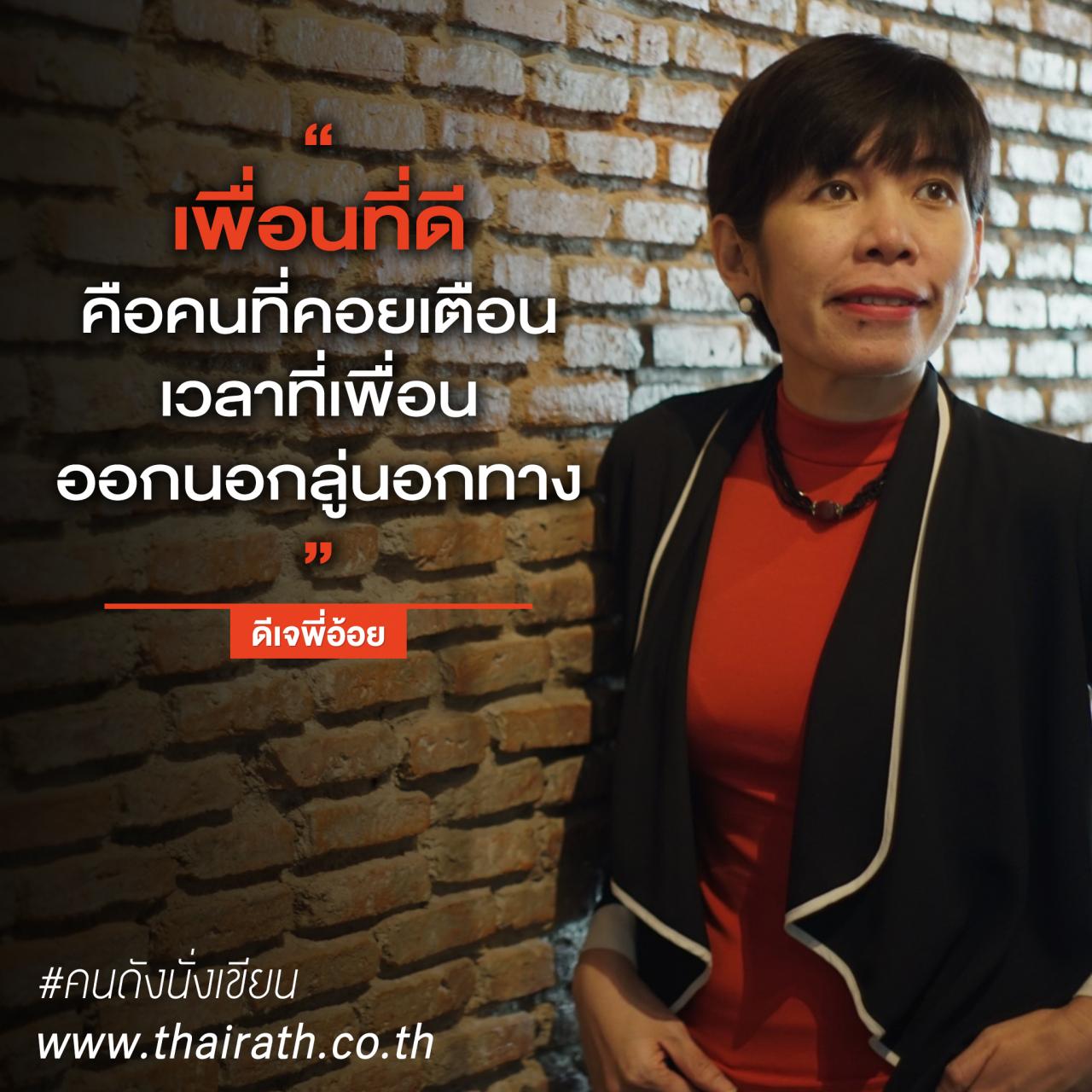 เราจะไม่เป็นเครื่องมือในการโกหกของใครค่ะ ชีวิตเรา เราก็ต้องมีมุมส่วนตัว มุมแห่งการใช้ชีวิตตามอำเภอใจ ไม่ใช่คนที่ต้องคอยปกป้องผู้หญิงที่นอกใจแฟนซ้ำแล้วซ้ำเล่า เพื่อนดีเราก็ชื่นชม เพื่อนขื่นขม เราก็ถาโถมให้กำลังใจ แต่ถ้าเพื่อนทำสิ่งเลวร้าย เราคือคนที่ต้องห้ามปราม แต่เมื่อพูดแล้ว เตือนแล้ว เธอยังทำ ก็ต้องปล่อยไปตามกรรม เราก็ถอยออกมาห่วงไกลๆ ไม่มีใครปกป้องใครได้ทั้งชีวิต ยิ่งเธอมีวิธีคิดแบบนี้ กอดกับใครก็ได้ นอนกับใครก็ได้ แฟนมาเมื่อไหร่ ค่อยใช้เวลากับแฟน โดยให้เพื่อนคอยตายแทน เวลาแฟนเริ่มมีปัญหา บางคนไม่อยากยุ่ง เรื่องของครอบครัวใคร ครอบครัวมัน แต่อย่าทำให้ฉันเดือดร้อน เอะอะอ้างเรา แฟนเขาจะคิดยังไง ไม่เคยรู้ว่าผู้หญิงของตัวเป็นผู้หญิงแบบไหน รู้แต่มีเพื่อนแย่ คอยดึงลงไปในทางที่ไม่ดี รักเพื่อนได้ ห่วงเพื่อนได้ แต่อย่ามาเอาเปรียบกันมากเกินไป หรือที่เพื่อนเป็นได้ถึงขั้นนั้น เพราะเราเป็นแบบนี้ อะไรก็ได้ ยังไงก็ได้ โดนเอาเปรียบแค่ไหนก็ได้ ไม่ใช่ค่ะ รักกัน พากันไปในทางที่ถูก ไม่ใช่รัก แล้วพยายามปกปักรักษาเพื่อนไว้ จนเขาเริ่มแยกไม่ได้ว่าอะไรดี อะไรเลว โกหกเมื่อไหร่ผู้ชายก็เชื่อ โกหกเมื่อไหร่ เพื่อนก็พร้อมเป็นหนังหน้าไฟ เพื่อนเราถึงสามารถทำอะไรต่อมิอะไร โดยไร้ความรับผิดชอบ ไม่ว่าต่อตัวเองหรือหัวใจใครก็ตาม เพื่อนที่ดี ไม่ใช่คนที่เพื่อนอยากได้อะไรก็ตามใจเพื่อน แต่จริงๆ คือคนที่คอยเตือน เวลาที่เพื่อนออกนอกลู่นอกทาง ยืนข้างๆ แต่ไม่ใช่เข้าข้างเสมอไปค่ะ