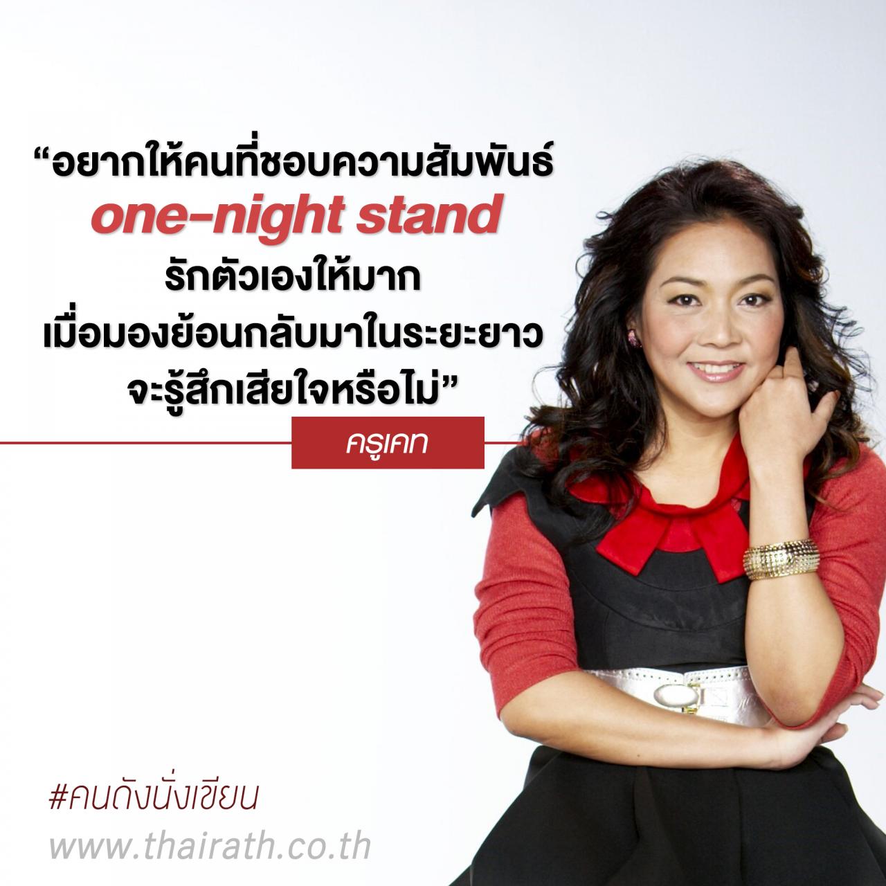 บทความนี้ไม่มีคำตอบว่า one-night stand ถูกหรือผิด ควรหรือไม่ควร เป็นที่ยอมรับในสังคมหรือไม่ยอมรับ แต่อยากให้คนที่ชอบความสัมพันธ์ one-night stand รักตัวเองให้มาก เข้าใจว่าทำอะไรไปเพื่ออะไร และหากทำไปแล้ว ก็ต้องไม่ทำให้ตัวเองและผู้อื่นเดือดร้อน ที่สำคัญอย่าลืมคำนึงถึงผลกระทบทางด้านจิตใจของตนเองในระยะยาวด้วยว่าเมื่อมองย้อนกลับมา จะรู้สึกเสียใจหรือดูถูกในการกระทำของตนเองหรือไม่