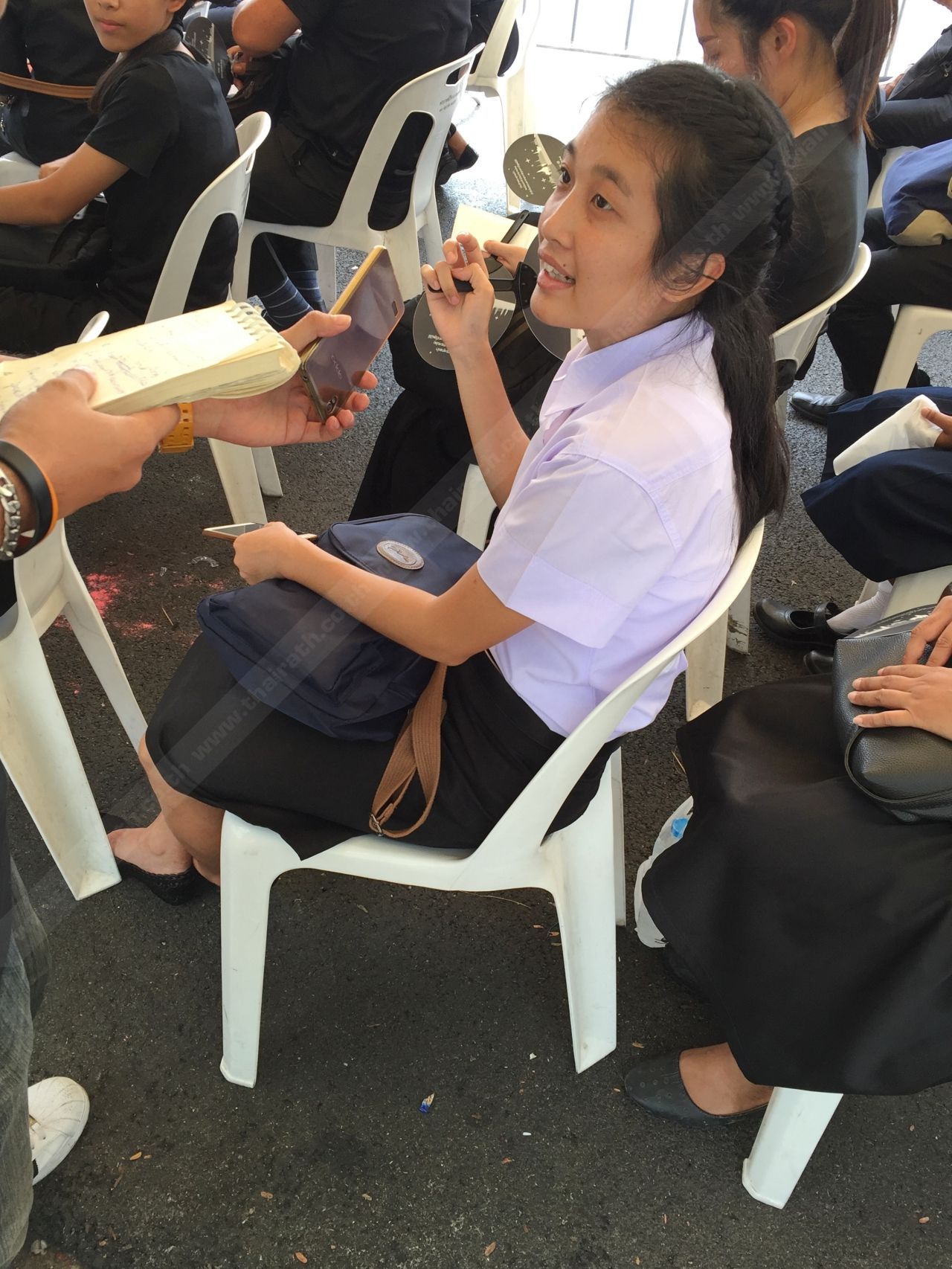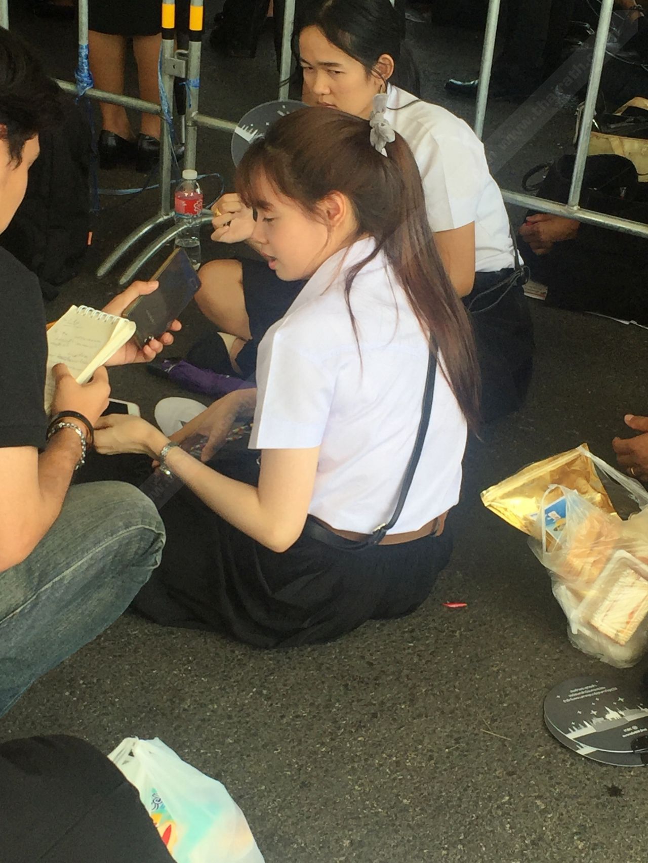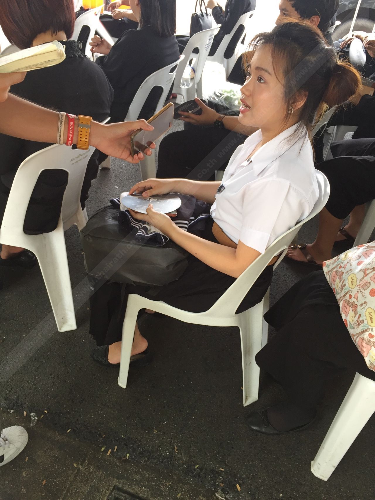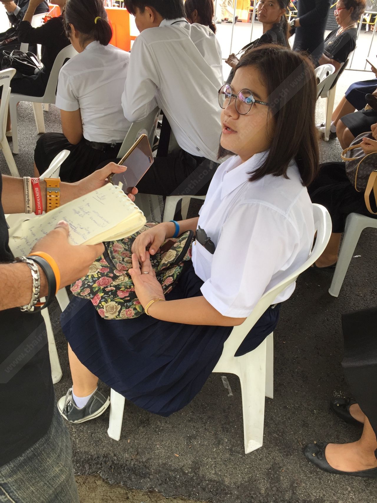 “หนูมีโอกาสได้มากราบพระบรมศพเป็นครั้งแรกค่ะ นั่งรถมาจากจังหวัดบึงกาฬ หนูรู้สึกดีใจที่ได้มากราบพระบรมศพครั้งหนึ่งในชีวิต หนูอยากมาตั้งนานแล้วแต่ว่าไม่มีโอกาส หนูอยากจะบอกกับพระองค์ท่านว่า ยังรักและคิดถึงพระองค์ท่าน และหนูก็นำหลักคำสอนของพระองค์ท่านมาประยุกต์ใช้ในชีวิตประจำวันก็คือ ปรัชญาเศรษฐกิจพอเพียง โดยตัวหนูจะเก็บออมเงินค่าขนมในแต่ละวันค่ะ”