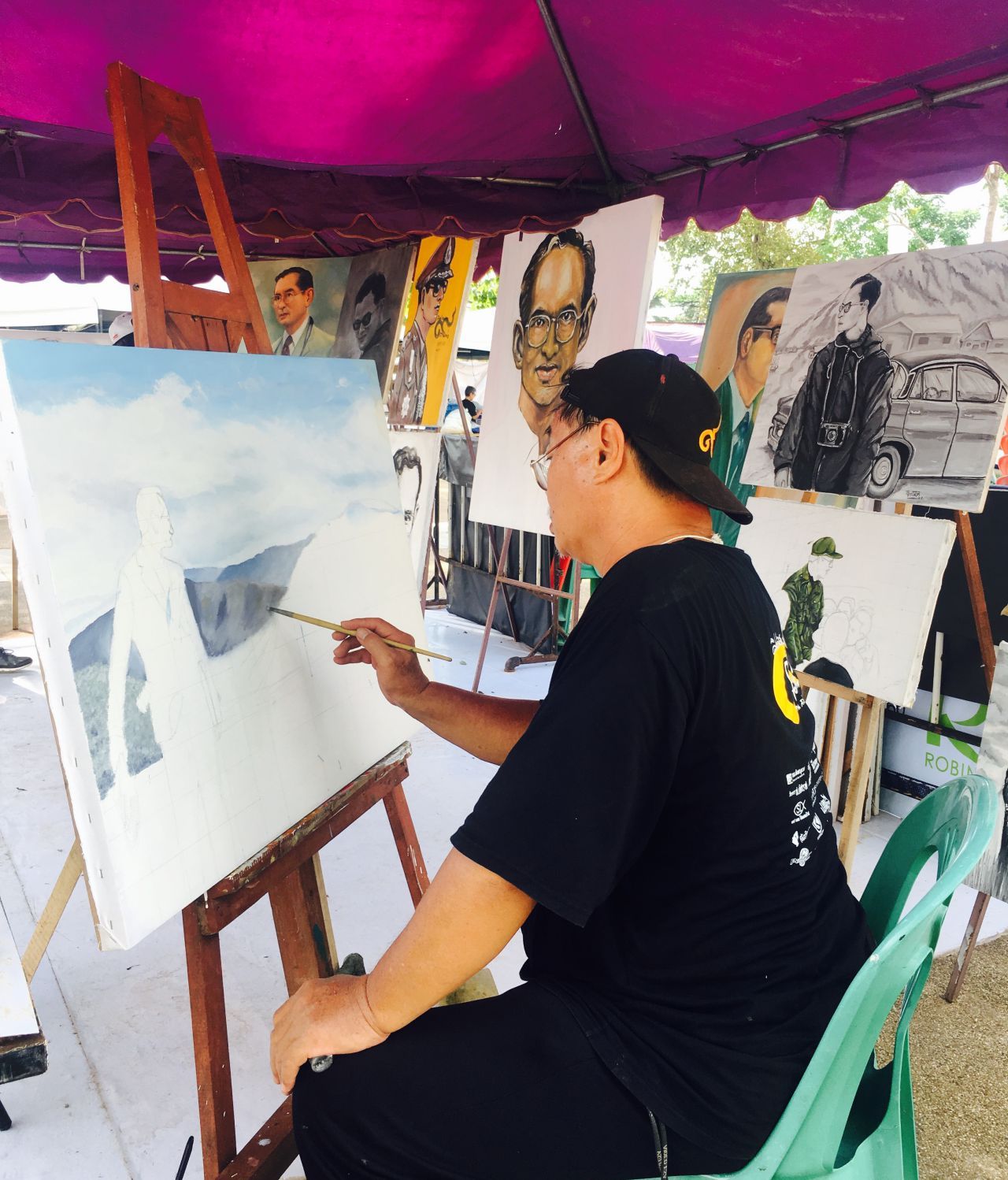 ทั้งนี้ ภายในงานจะมีภาพผลงานที่เหล่าศิลปินต่างๆ ได้สร้างสรรค์วาดภาพพระบรมสาทิสลักษณ์ พระราชกรณียกิจต่างๆ ออกมาด้วยสีน้ำอะคริลิก ลงบนผ้าสีขาว ยาว ๒๔๙ เมตร และมีพื้นที่สำหรับให้ประชาชนทั่วไปได้มีโอกาสวาดภาพเช่นกัน และช่วงเวลาเย็นๆ ภายในสวนจะมีเหล่าศิลปินมาร่วมกันร้องบรรเลงเพลงพระราชนิพนธ์ เพื่อสรรเสริญและไว้อาลัยแด่ในหลวง รัชกาลที่ 9 ด้วย
