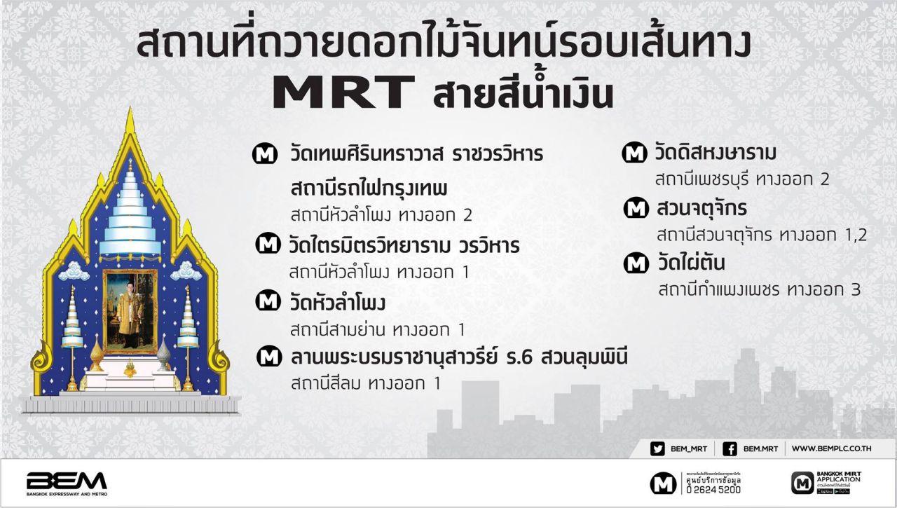 นอกจากนั้นยังมีเส้นทางสถานที่ถวายดอกไม้จันทน์รอบเส้นทาง MRT สายสีน้ำเงิน มาบอกอีกด้วยว่าสามารถไปได้ที่สถานีไหนบ้าง