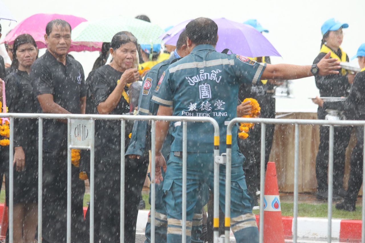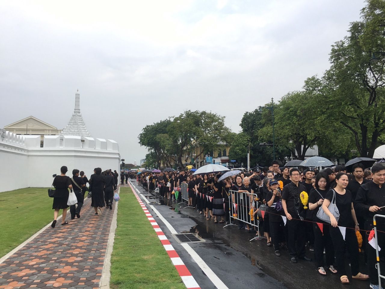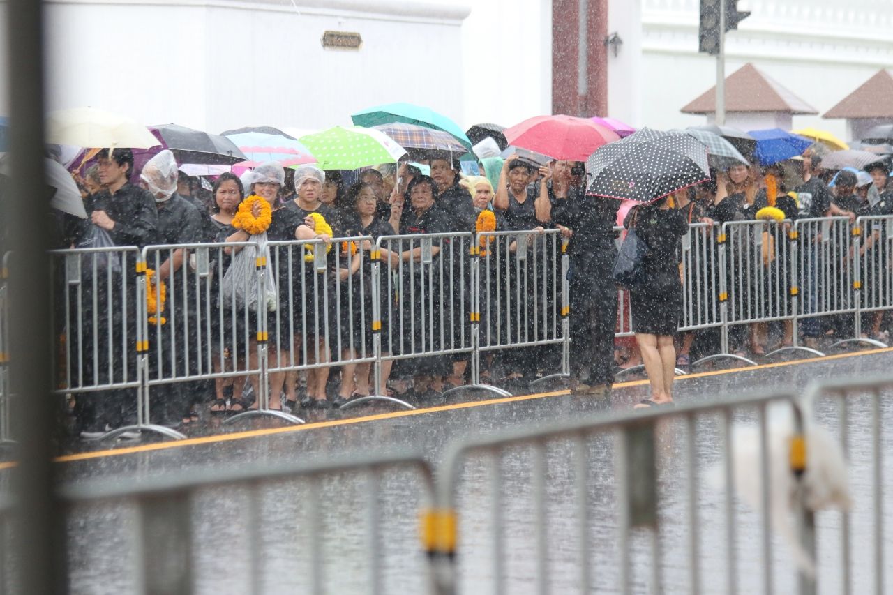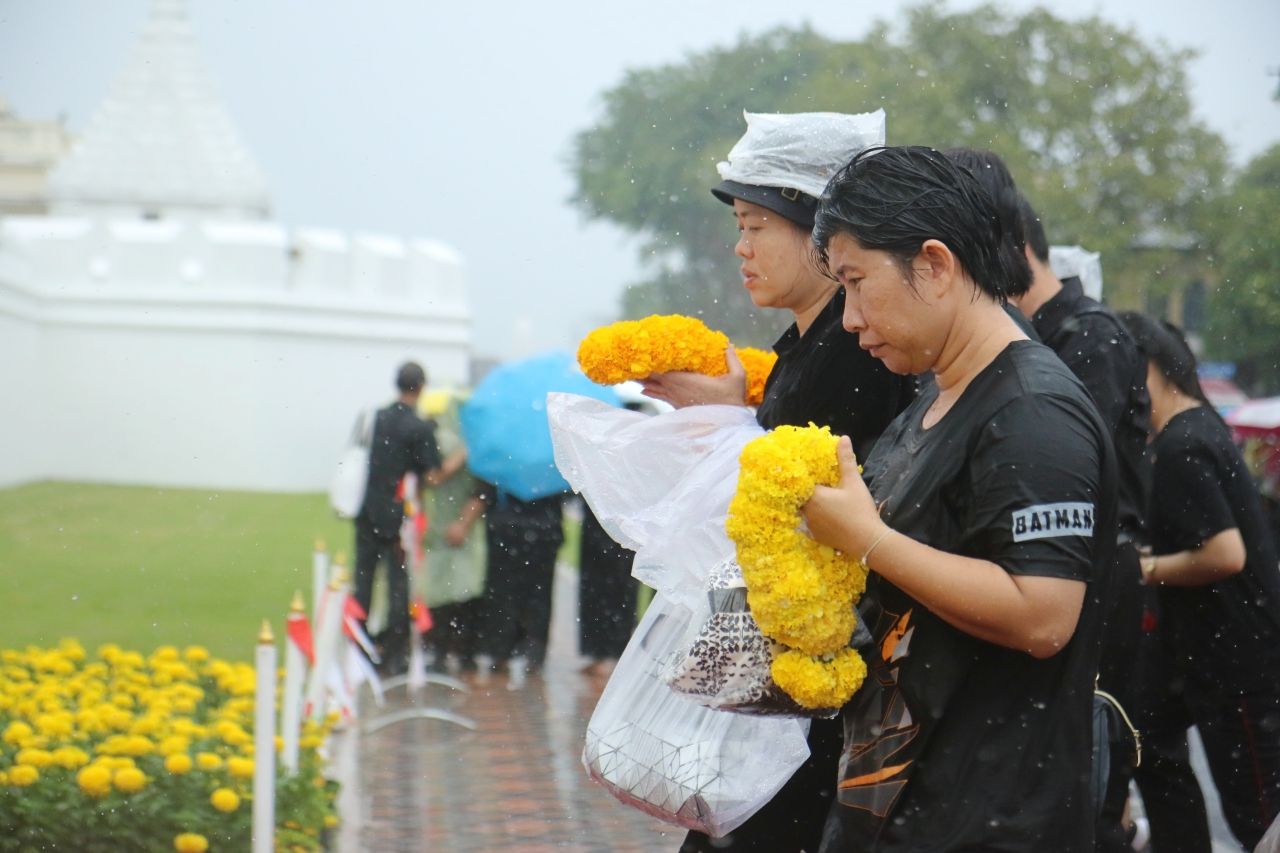 ไทยรัฐออนไลน์ ลงพื้นที่เช้าวันนี้เพื่อสำรวจบรรยากาศ พร้อมประมวลภาพพสกนิกรชาวไทยที่หลั่งไหลเดินทางมาเข้าคิวกันแต่เช้ามืด เพื่อนำพวงมาลัยดอกไม้สดมาถวาย เบื้องหน้าพระบรมฉายาลักษณ์พระบาทสมเด็จพระปรมินทรมหาภูมิพลอดุลยเดช โดยมีการต่อแถวยาวเหยียดหลายกิโลเมตร แม้จะมีฝนตกลงมาค่อนข้างหนักก็ตาม...