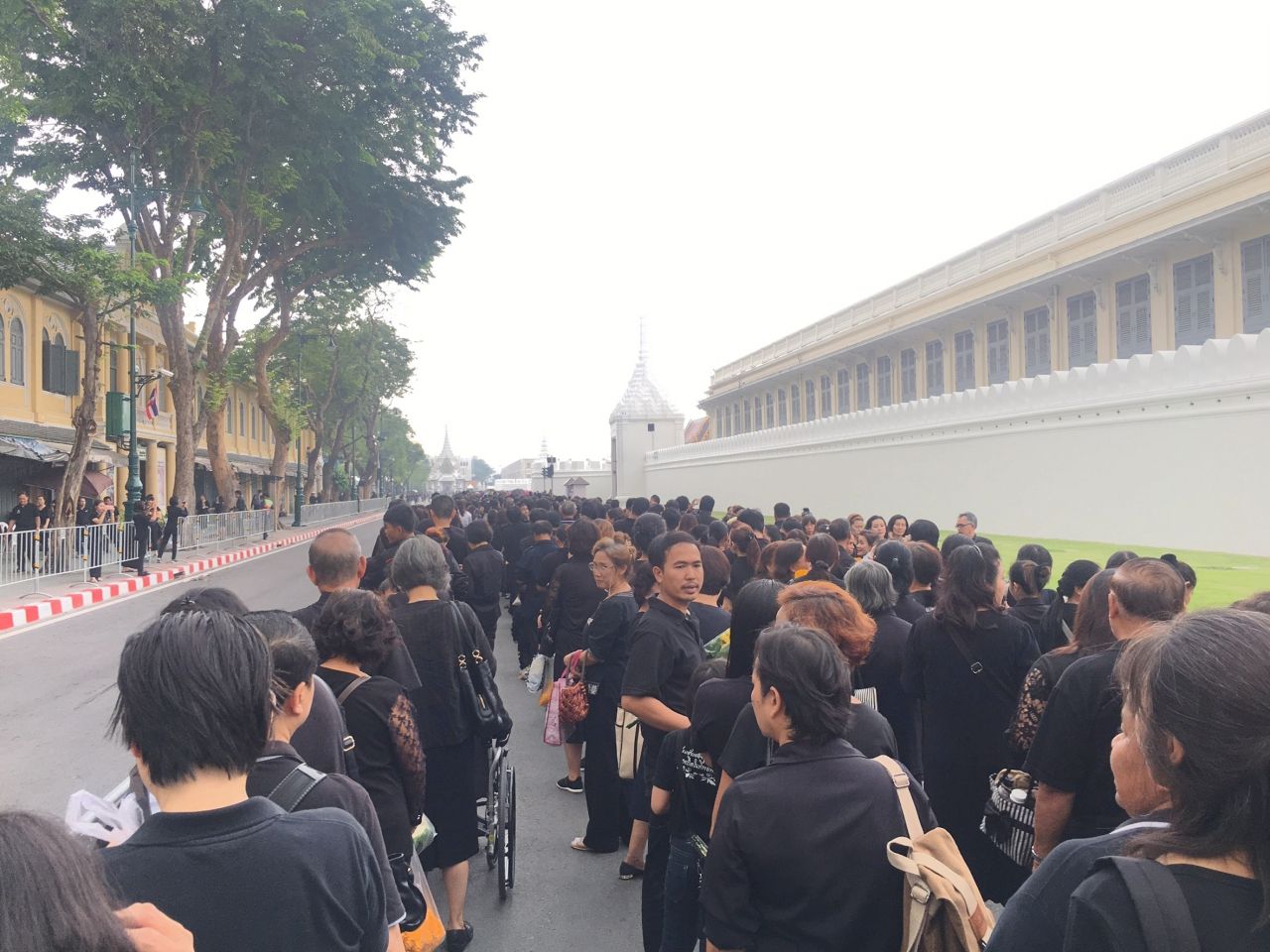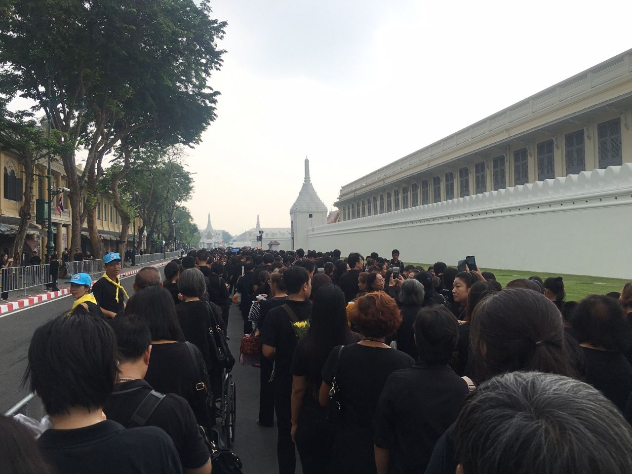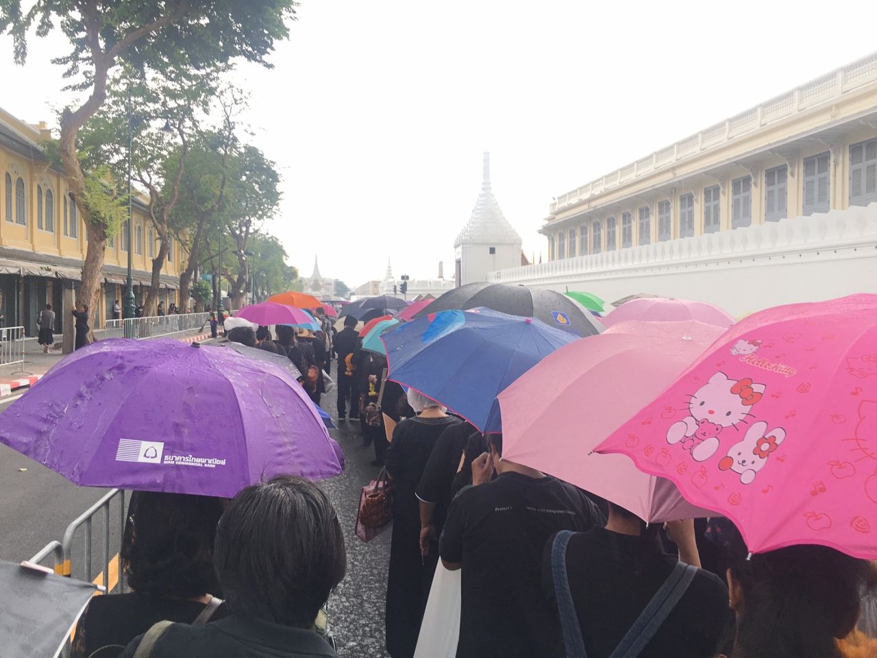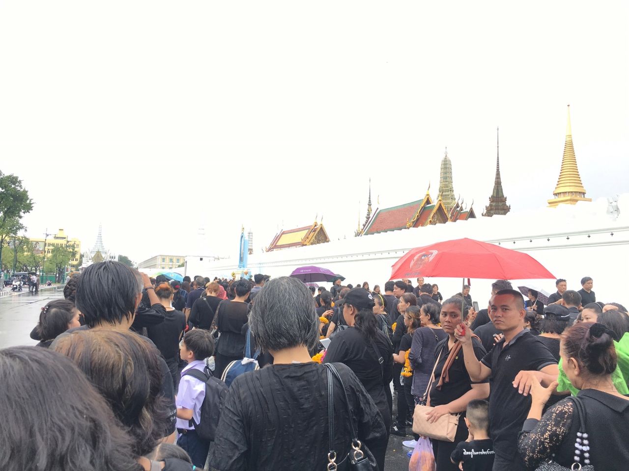 ไทยรัฐออนไลน์ ลงพื้นที่เช้าวันนี้เพื่อสำรวจบรรยากาศ พร้อมประมวลภาพพสกนิกรชาวไทยที่หลั่งไหลเดินทางมาเข้าคิวกันแต่เช้ามืด เพื่อนำพวงมาลัยดอกไม้สดมาถวาย เบื้องหน้าพระบรมฉายาลักษณ์พระบาทสมเด็จพระปรมินทรมหาภูมิพลอดุลยเดช โดยมีการต่อแถวยาวเหยียดหลายกิโลเมตร แม้จะมีฝนตกลงมาค่อนข้างหนักก็ตาม...