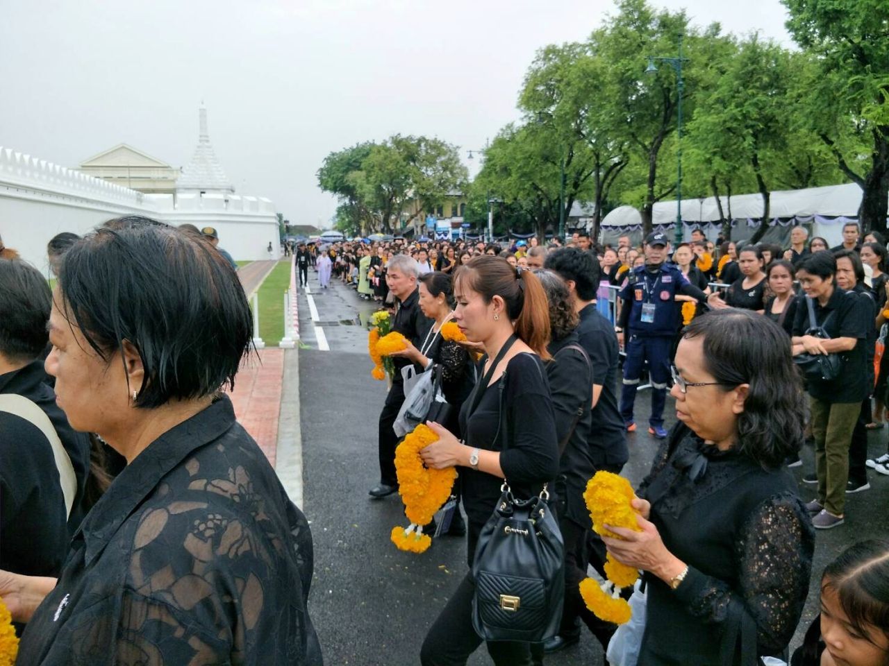 2. ประชาชนชาวไทยสามารถเข้ามาถวายพวงมาลัยดอกไม้สดได้ 24 ชม. ยกเว้นวันที่ 15 และ 21 ตุลาคมนี้ ซึ่งเป็นวันซ้อมริ้วขบวนพระบรมราชอิสริยยศ งานพระราชพิธีถวายพระเพลิงพระบรมศพ จะเปิดให้เข้ากราบและถวายพวงมาลัยดอกไม้สดเบื้องหน้าพระบรมฉายาลักษณ์ได้อีกครั้ง หลังเสร็จสิ้นการซ้อมริ้วขบวน