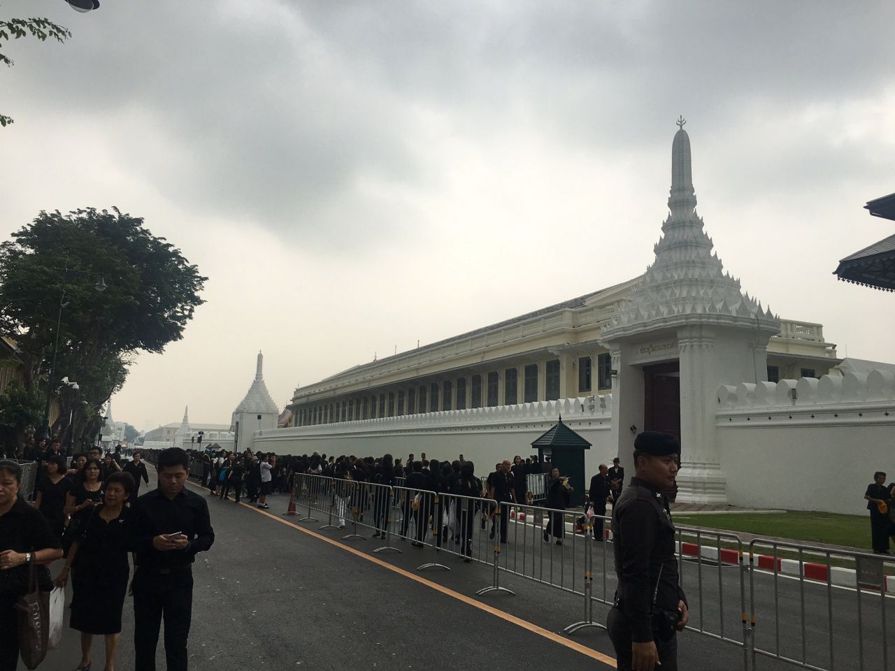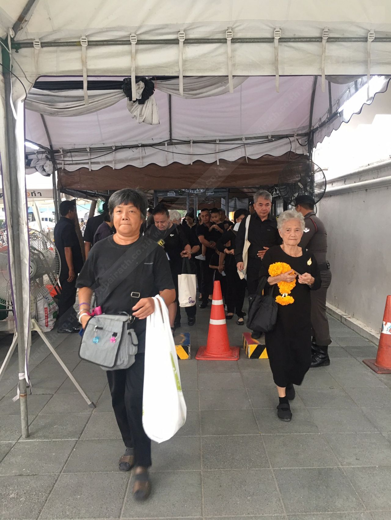 3. ก่อนจะเข้าไปถวายพวงมาลัยดอกไม้สดได้นั้น จะต้องผ่านจุดตรวจของเจ้าหน้าที่เสียก่อน โดยเจ้าหน้าที่ได้เปิดจุดคัดกรอง 2 จุด ที่บริเวณประตูท่าช้าง และประตูริมคลองหลอด ระหว่างถนนศาลหลักเมืองและกระทรวงกลาโหม