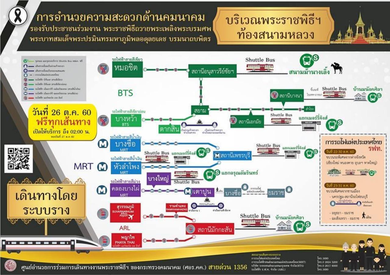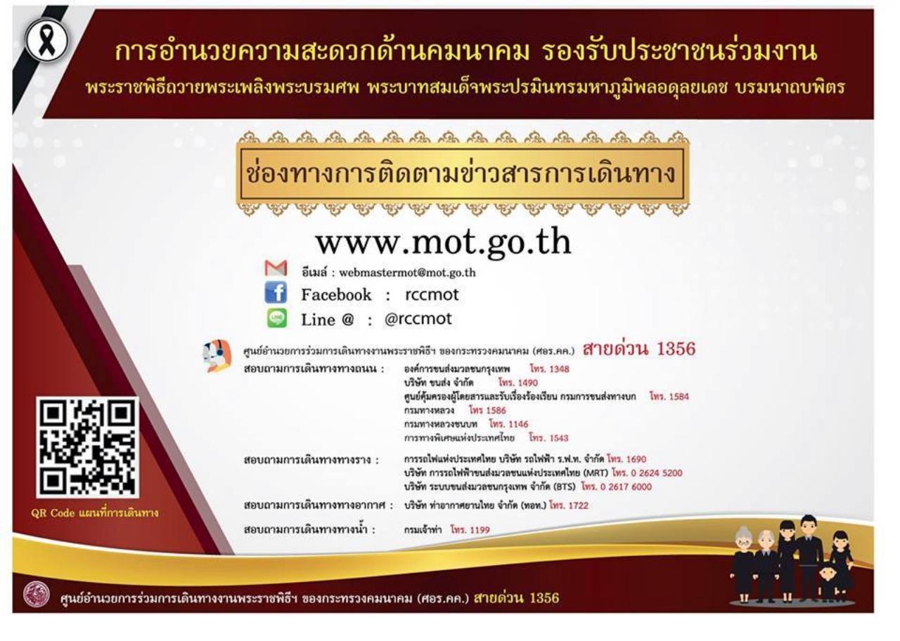 ที่มาภาพบางส่วน : ศูนย์อำนวยการเดินทางพระราชพิธีถวายพระเพลิงพระบรมศพฯ กระทรวงคมนาคม