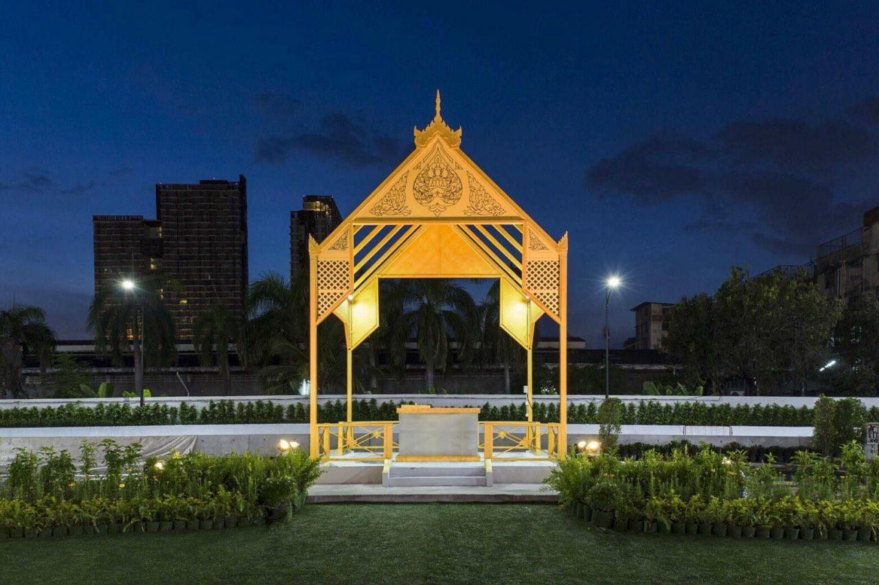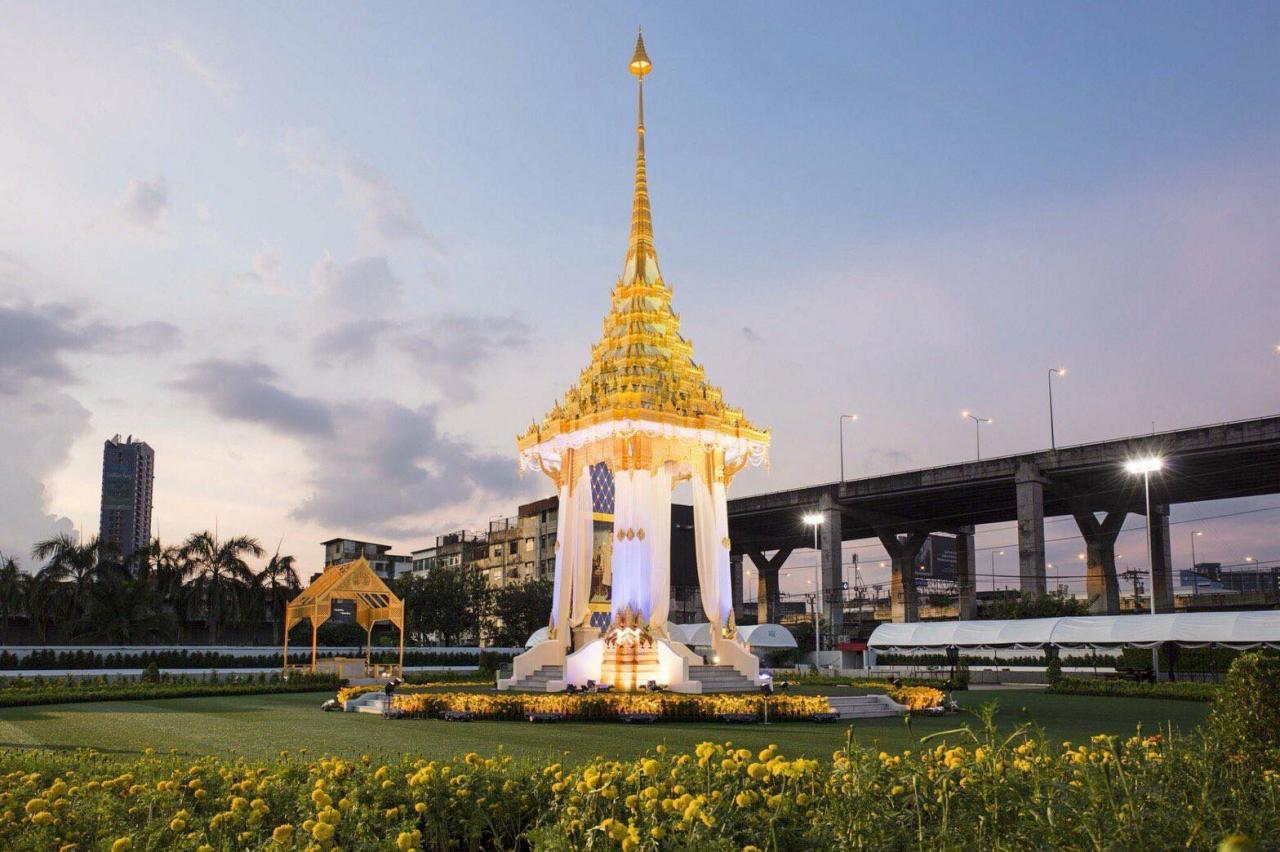 พระเมรุมาศจำลองแห่งนี้ ตั้งอยู่ในพื้นที่ของศูนย์การประชุมไบเทค บางนา ตรงลานกว้างหน้าศูนย์ประชุม