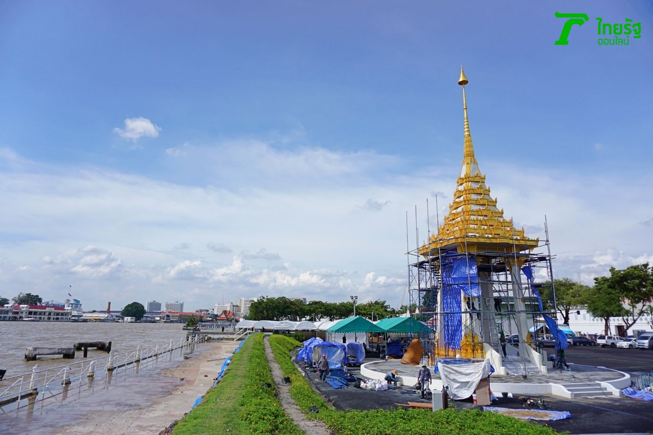 พระเมรุมาศจำลองแห่งนี้ ตั้งอยู่ติดริมแม่น้ำเจ้าพระยา ส่วนอีกด้านหนึ่งจะติดกับถนนหลังพระบรมมหาราชวัง