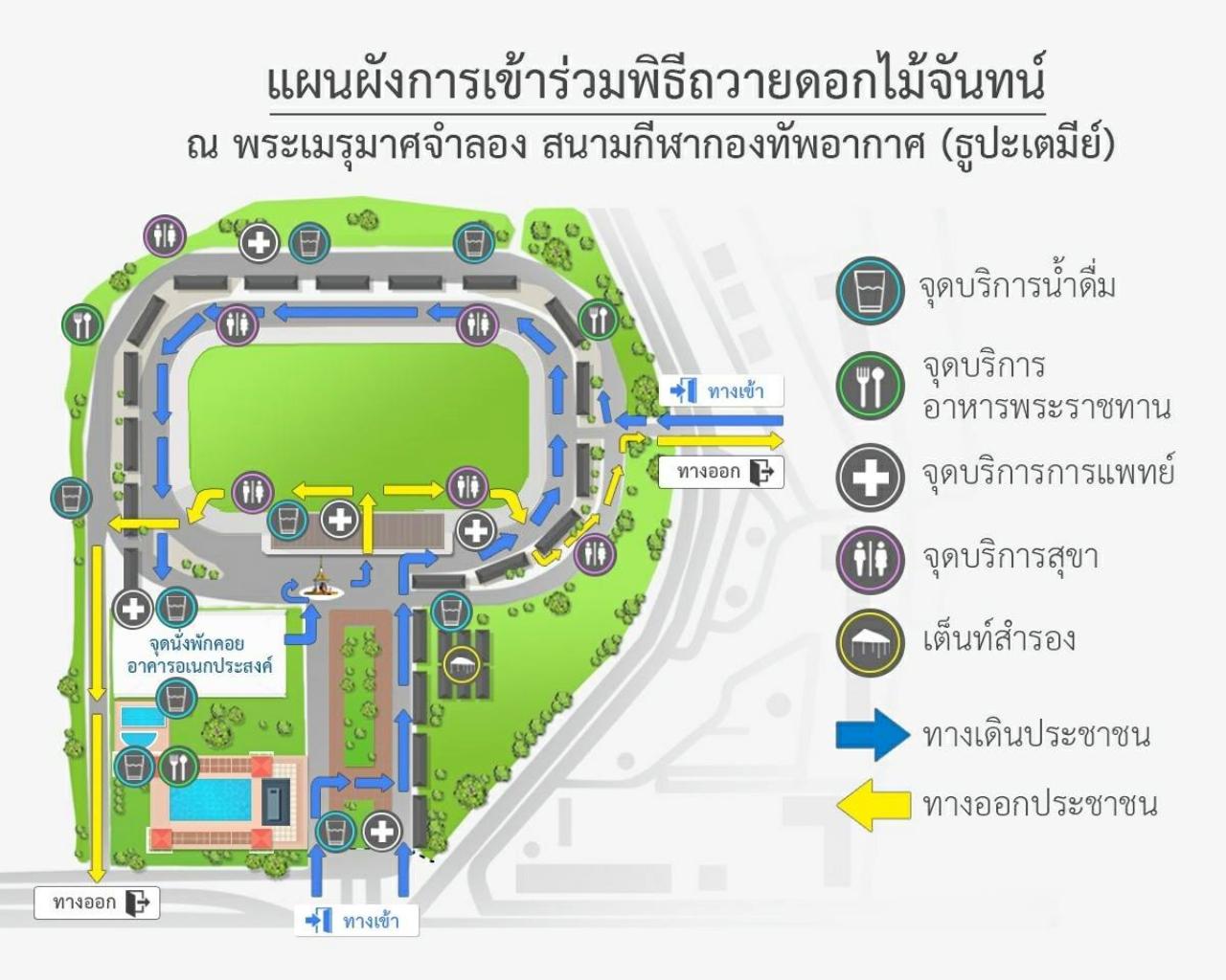 เนื่องจากเวลานี้ รอบๆ สนามหลวงน่าจะมีประชาชนจับจองพื้นที่กันเต็มหมดแล้ว สำหรับใครที่ไม่สามารถเดินทางเข้าไปร่วมพระราชพิธีฯ ในบริเวณมณฑลพิธีท้องสนามหลวงได้ ไม่ต้องเสียใจไป เพราะยังสามารถเดินทางไปถวายดอกไม้จันทน์ได้ ณ พระเมรุมาศจำลองทั้ง 9 แห่งทั่วกรุงเทพฯ และปริมณฑล