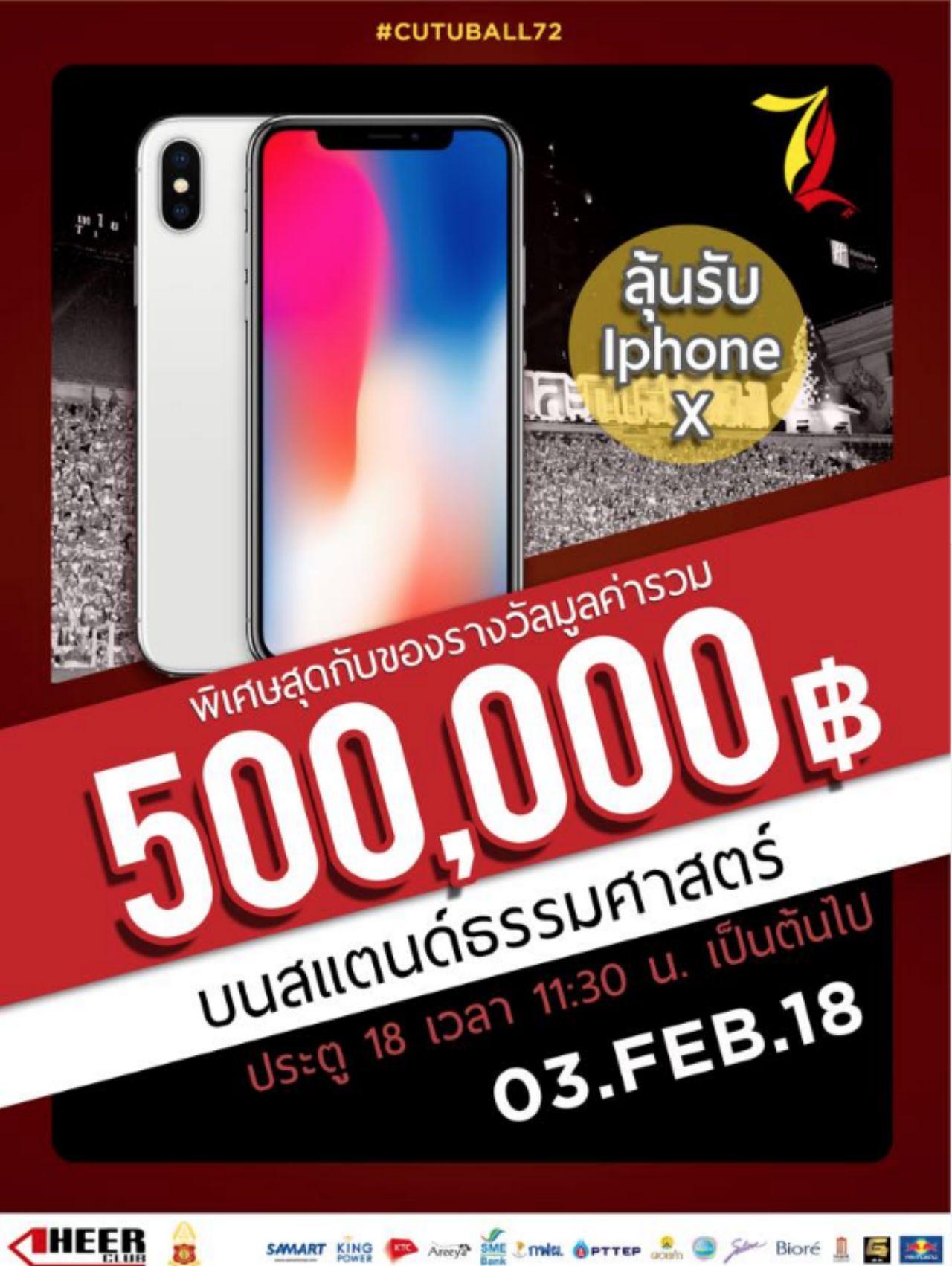 1. iPhone X จำนวน 10 เครื่อง (เร่ิมต้นที่ราคา 40,500 บาท) มูลค่ากว่า 4 แสนบาท