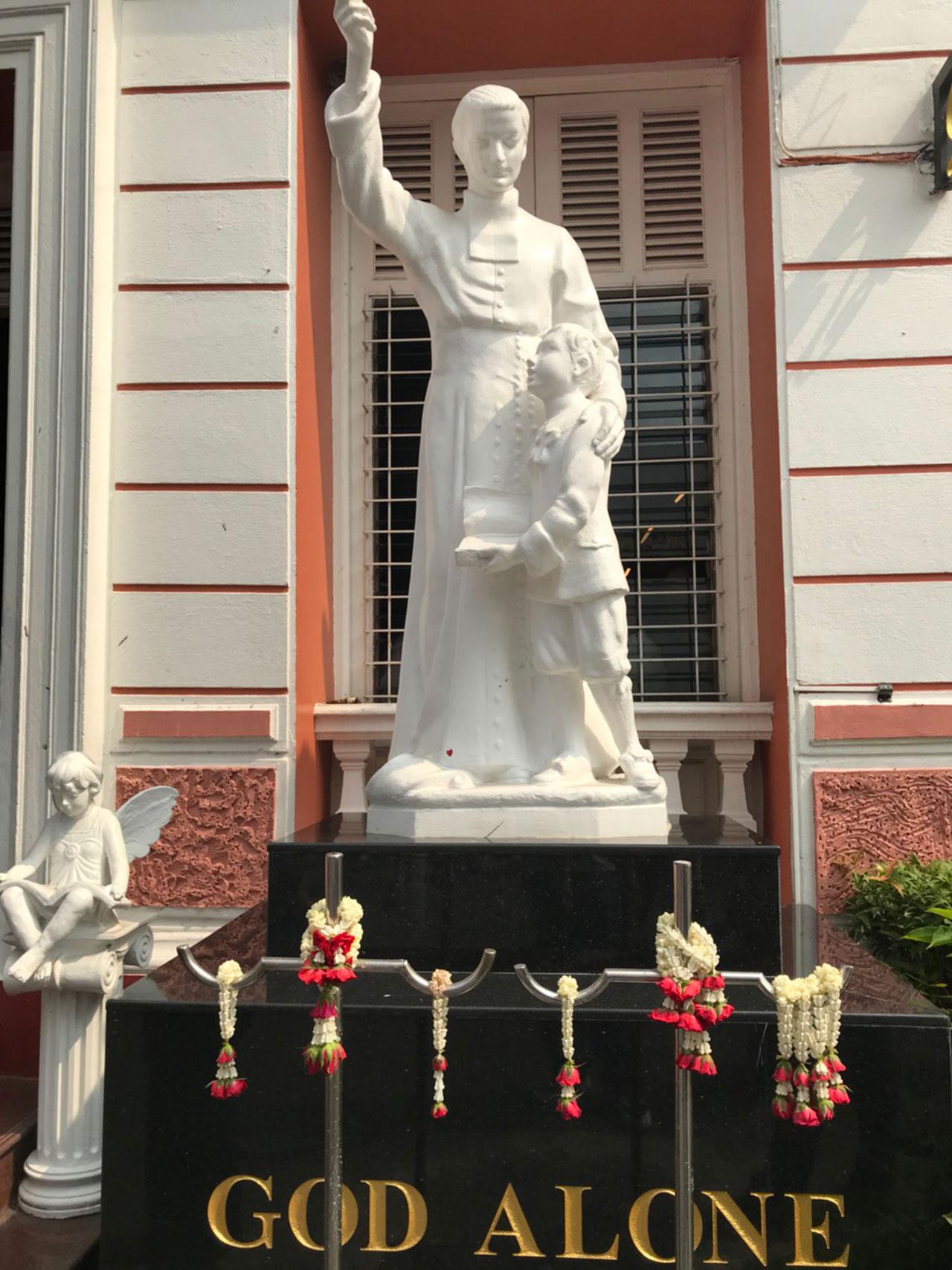 7. ปรัชญาการศึกษาของโรงเรียนมี 2 อย่าง คือ 1.จุดหมายของชีวิต คือ การรู้จักสัจธรรม ความจริง และการเข้าถึงธรรมอันสูงส่ง อันเป็นบ่อเกิดของชีวิต 2.มนุษย์ทุกคนต้องทำงาน ความอุตสาหวิริยะเป็นหนทางไปสู่ความสำเร็จ (Labor Omnia Vincit)