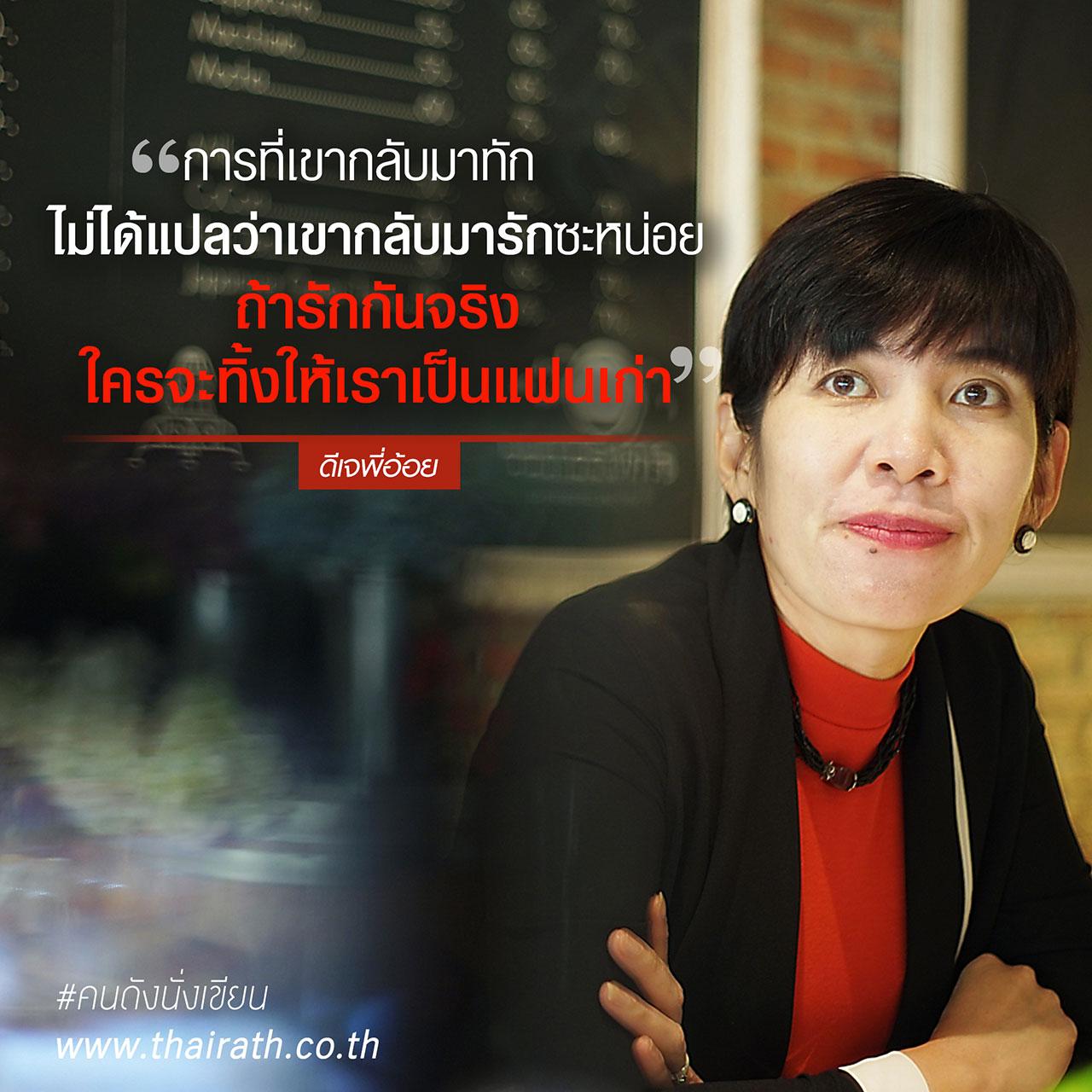 ไม่ต้องทำอะไรค่ะ เจอคนที่แสนจะใช่ ในเวลาที่ไม่ใช่ ให้นับไปเลยว่าไม่ใช่ ไม่ต้องพิรี้พิไร คนเรามองอยู่ไกลๆ ยังไงก็สวย อยู่ด้วยอาจเป็นอีกแบบ จากกันไปตั้งสิบปี ถ้าเขามีเยื่อใย ไม่มีที่ไหนเกินความพยายามที่จะตามหากัน คงไม่ทิ้งเราเอาไว้นานขนาดนี้ เราต่างคนต่างมีชีวิตของตัวเองแล้ว เรามีคนที่ควรดูแลและรับผิดชอบความรู้สึกของเขาไปทั้งชีวิต คือสามีเรา อย่ากอดเขาแล้วคิดถึงแฟนเก่า ถ้าเขาทำกับเราบ้าง คงไม่มีความสุขเช่นกัน คิดถึงหัวใจคนของเรา และภรรยาของแฟนเก่า เมื่อเราต่างมีคนของตัวเอง ก็เดินหน้าต่อไป คนเก่าคือคนที่ไม่ใช่เวลาของเราแล้ว ถ้ายังอนุญาตให้ตัวเองทำอะไรตามใจ อาจมีปัญหาใหม่ให้เราตามแก้ไม่เลิก “นอกใจ” กับ “ติดยา” เริ่มต้นคล้ายๆ กัน คือคิดว่าไม่น่าติด คุยนิดเดียวไม่เป็นไร ในที่สุดก็ไปกันใหญ่จนห้ามใจไม่ได้ เราเป็นส่วนเติมเต็มของครอบครัวเราอยู่ดีๆ รู้ตัวอีกทีไปเป็นส่วนเกินของอีกครอบครัวไปแล้ว ไม่อยากให้เป็นแบบนั้น ลองตัดภาวะเสี่ยงดีไหม ถ้ายังหวั่นไหว ต้องเดินออกมาให้ไกลจากจุดเกิดเหตุ ยอมรับไปเลยว่าตัวเองไม่บริสุทธิ์ใจ ถ้ายังคุยกับเขาต่อไป ไม่ใครก็ใครต้องทำผิด ชีวิตไม่ได้คิดง่ายๆ แค่อยากได้อะไร ก็ทำตามใจ ต้องดูว่าความรู้สึกดีของเราไปทำร้ายหัวใจใครหรือเปล่าด้วย