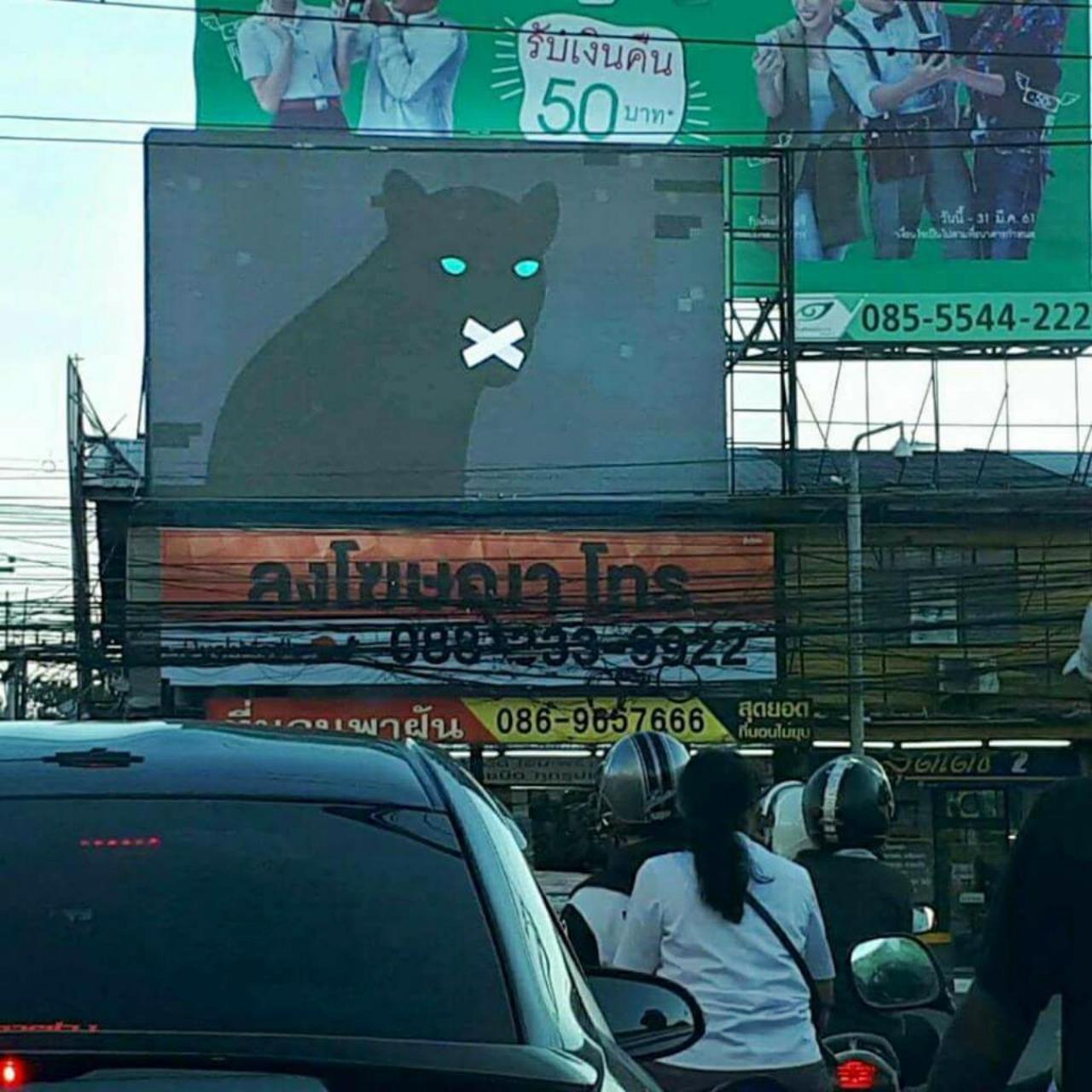 นอกจากนี้ยังมีกลุ่มคนอีกบางส่วน แสดงออกเชิงสัญลักษณ์ นำรูปเสือดำไร้เสียง มานำเสนอผ่านจอฉายภาพ LED ซึ่งหลายวันต่อมา พบว่าถูกนำภาพออกไปแล้ว ส่วนภาพกราฟฟิตี้จากศิลปินดังก็ถูกลบออกไปเช่นกัน