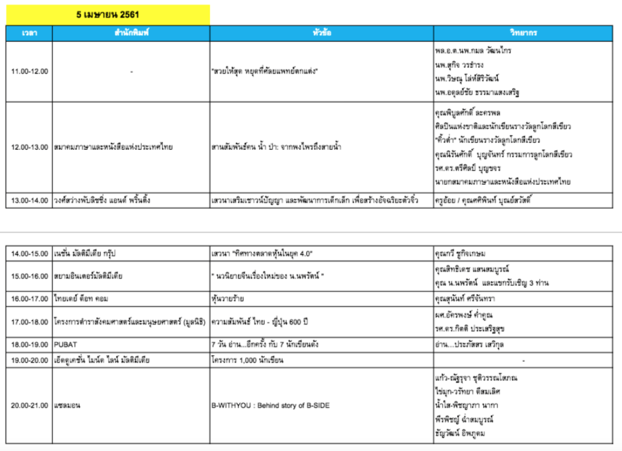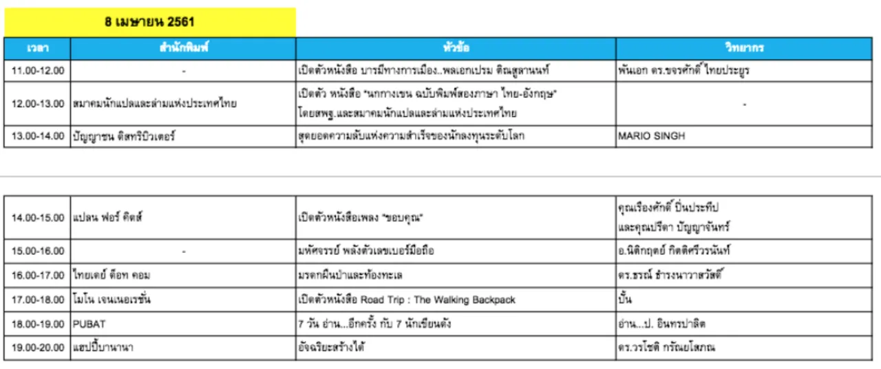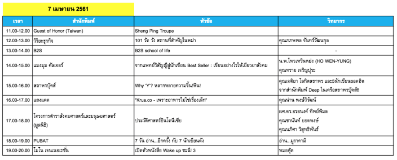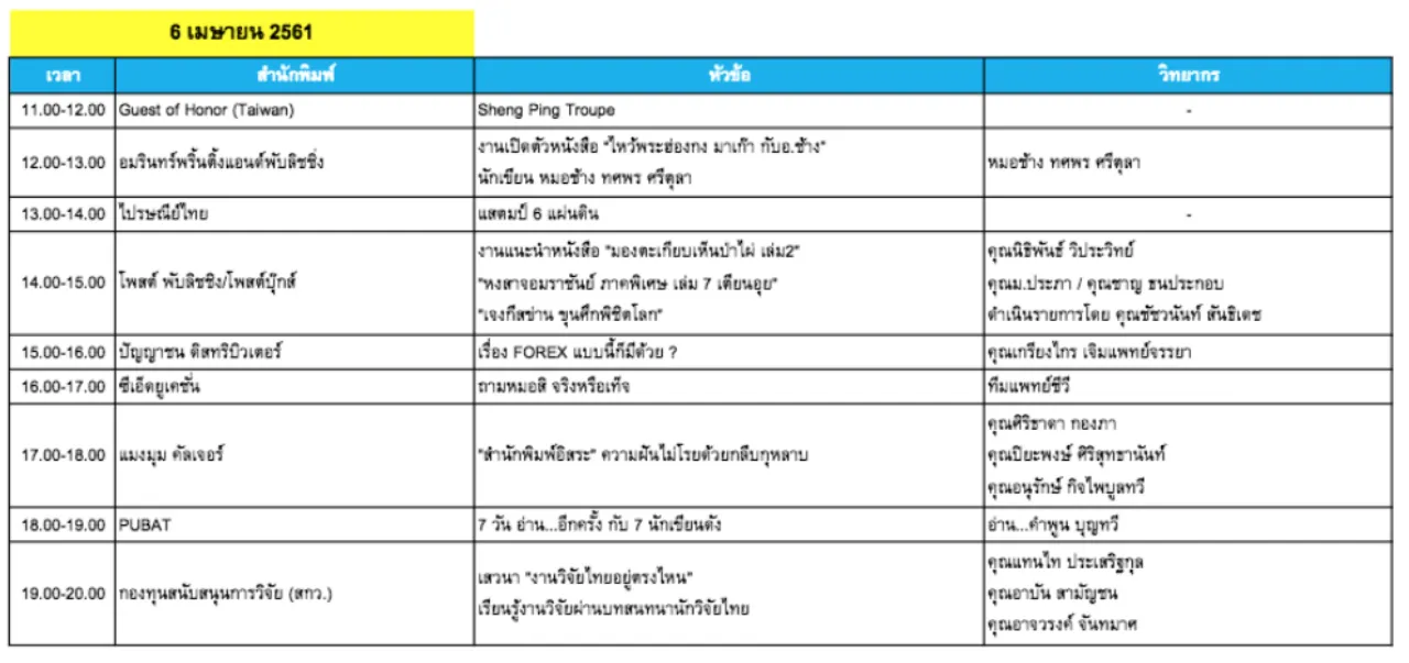 และนี่ก็คือบางส่วนที่ ไทยรัฐออนไลน์ ได้หยิบเอามาแนะนำกัน ใครที่สนใจ ห้ามพลาดสำหรับงานนี้ สัปดาห์หนังสือแห่งชาติ ครั้งที่ 46 และสัปดาห์หนังสือนานาชาติ ครั้งที่ 16 ระหว่างวันที่ 29 มีนาคม – 8 เมษายน 2561 ณ ศูนย์การประชุมแห่งชาติสิริกิติ์