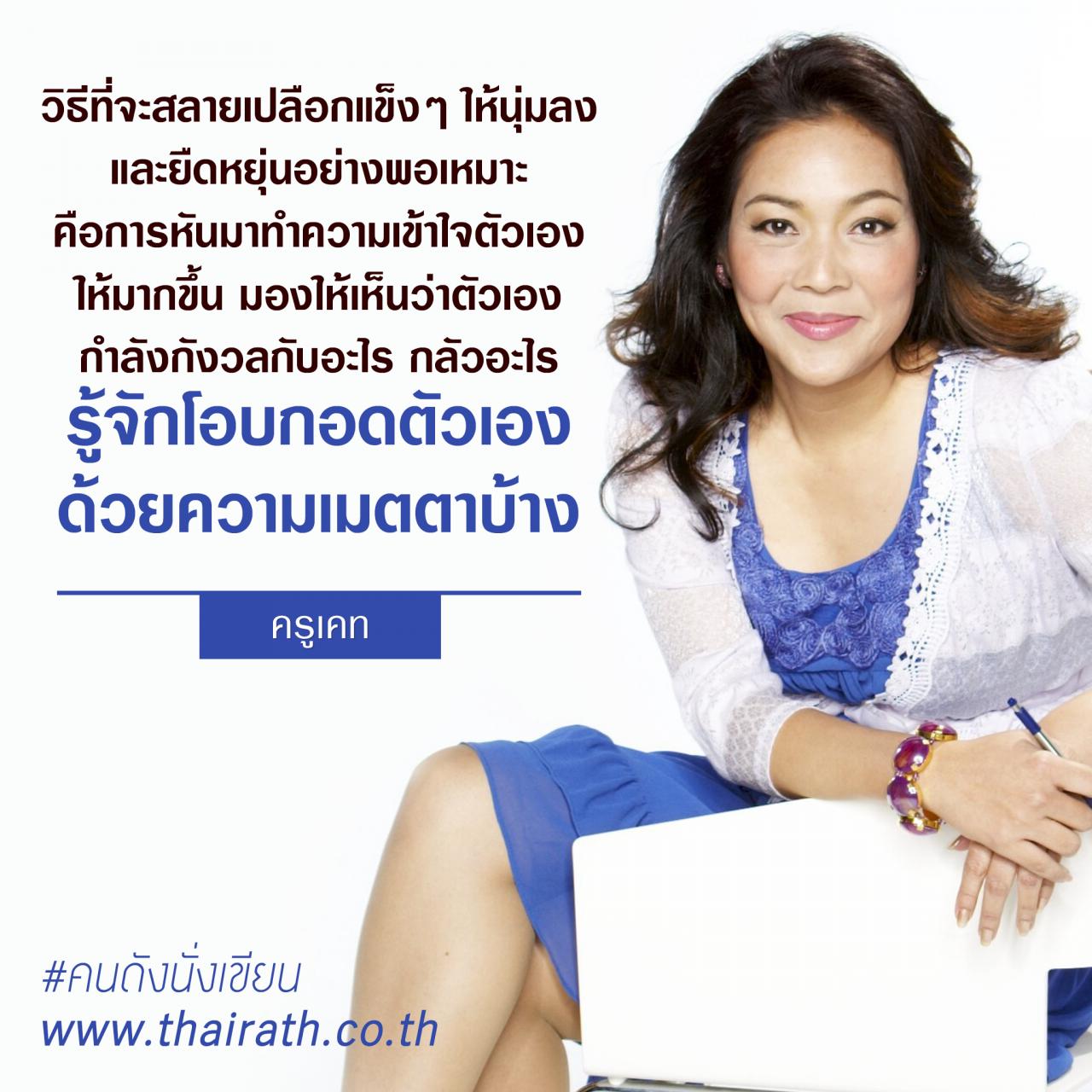 วิธีที่จะสลายเปลือกแข็งๆ ให้นุ่มลง และยืดหยุ่นอย่างพอเหมาะ คือการหันมาทำความเข้าใจตัวเองให้มากขึ้น มองให้เห็นว่าตัวเองกำลังกังวลกับอะไร กลัวอะไร รู้จักโอบกอดตัวเองด้วยความเมตตาบ้าง เราไม่จำเป็นต้องเป็นฮีโร่ หรือผู้แพ้ ขอแค่เป็นตัวของตัวเอง ยอมรับตัวเองที่เป็นโดยไม่มีเงื่อนไข ไม่ต้องพอใจหรือไม่พอใจอะไรเกี่ยวกับตัวเอง แค่ยอมรับ เช่น โกรธก็ยอมรับว่าโกรธ และไม่ต้องไปปรุงแต่งต่อให้มันโกรธมากขึ้น กลัวก็ยอมรับว่ากลัวไม่ต้องเสแสร้งแอ็กว่าไม่กลัว มีความสุขก็ยิ้มให้สุดๆ ไม่ต้องฝืนเอาไว้ สนุกก็ยิ้มหัวเราะให้สุดๆ อย่าขยักเอาไว้ ความกลัว ความสงสัย ความรู้สึกไม่มั่นคง กลัวคนไม่รัก กลัวคนไม่ยอมรับ เป็นเรื่องปกติของมนุษย์ ขอเพียงเรารับรู้อารมณ์ความรู้สึกของตัวเองให้ไว ไม่ต้องคิดนู่นนี่ต่อให้ฟุ้งซ่าน อย่าเอาความคาดหวังของคนอื่นมาแบกไว้ให้หนัก หมั่นเมตตาและปลอบใจตัวเองบ้าง เปลือกหนาๆ ก็จะค่อยๆ เปลี่ยนเป็นยืดหยุ่นได้ ไม่แข็งกระด้าง และเป็นตัวของตัวเองอย่างมีความสุขค่ะ