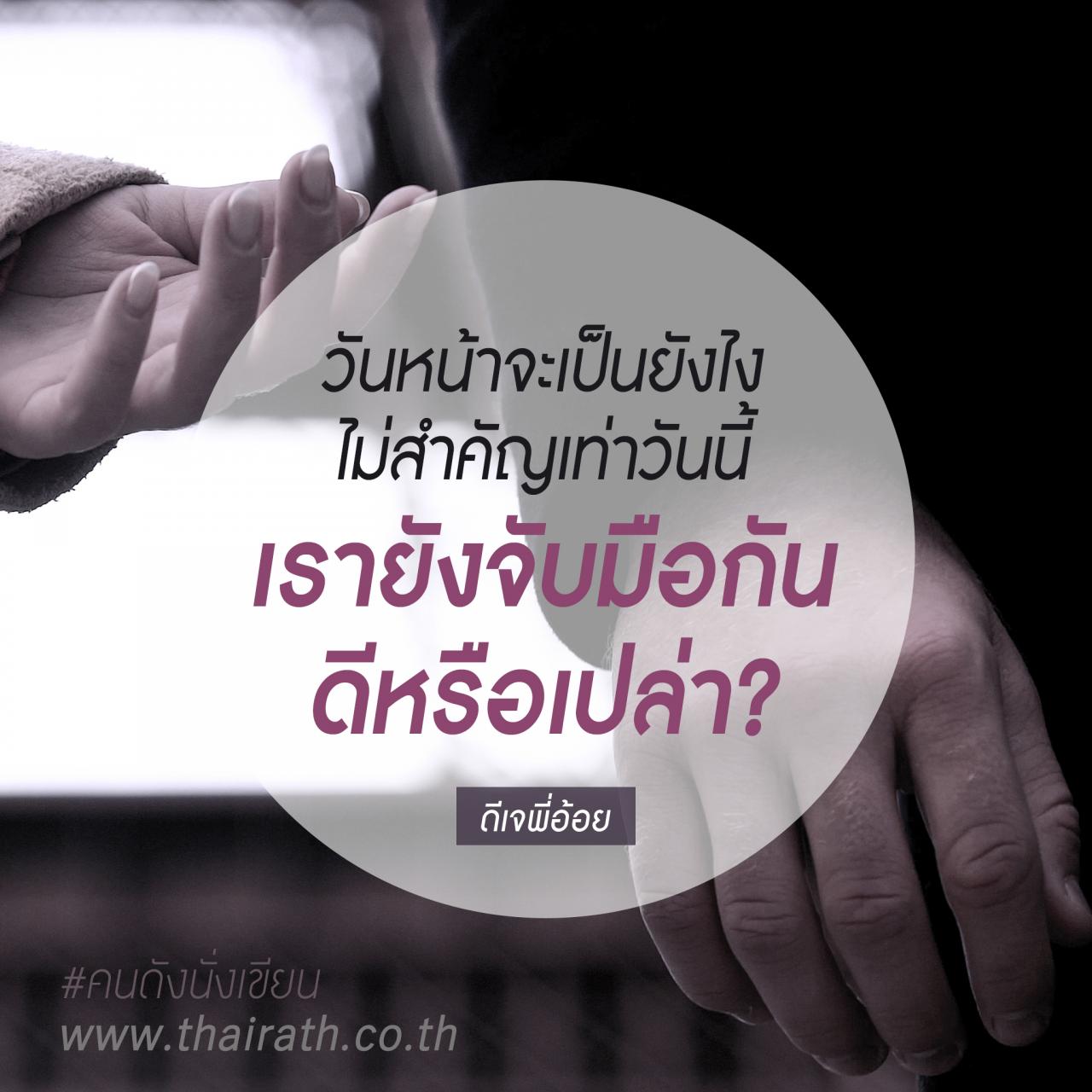 ไม่ได้มองโลกแง่ร้ายนะคะ แต่ไม่มองมุมนี้ก็ไม่ได้ จะคู่ไหนๆ ที่บอกว่า “ไม่มีเวลา” สำคัญว่ามีเจตนาที่จะให้เวลากันหรือเปล่า จะแบ่งเวลาให้มากหรือน้อยต่างกันไป ก็ต้องให้สิทธิ์กับอีกหัวใจว่ารับไหว หรือไม่ไหว สื่อสารกันแบบไหน ขอความเข้าใจ และให้ความใส่ใจ เวลาเจอหน้าอาจจะน้อยไป แต่ไม่มีที่ไหนไกลเกินกว่าจะคิดถึง อุปกรณ์การสื่อสารอยู่ข้างตัว ถ้าหัวใจยังอยากดูแลกันไว้ ส่งสติกเกอร์ไลน์ใช้เวลาไม่กี่วินาที ข้อความที่ส่งหากันสั้นๆ สามารถดูแลความสัมพันธ์ได้ยาวนาน ปัญหาคือ การมีเรา ดูเป็นภาระของเขาเกินไปไหม ถึงตัดออกจากชีวิตง่ายดายขนาดนั้น