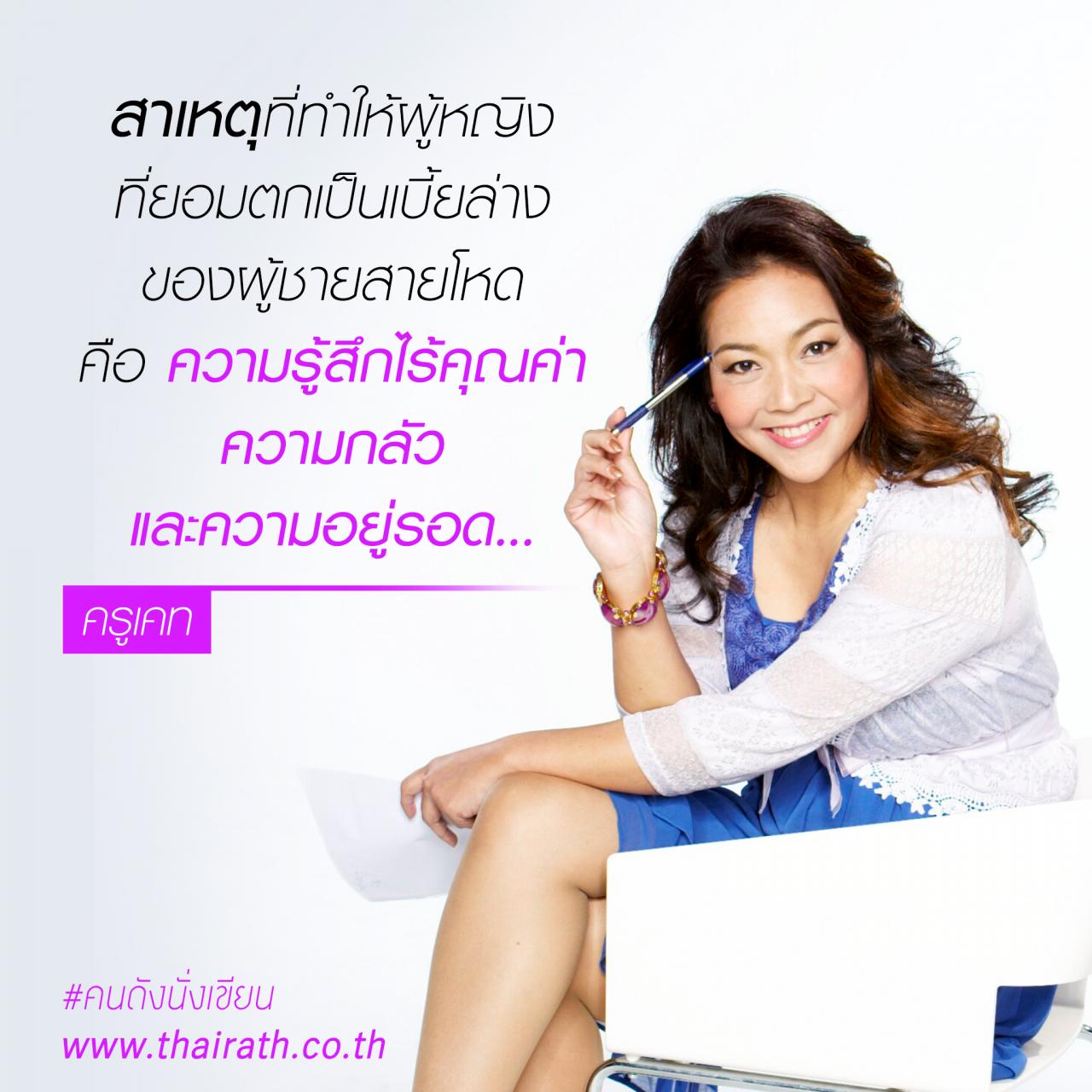 แต่เรื่องเป็นเรื่องส่วนบุคคล เราไม่ได้เจอแบบนี้อาจมองว่าผู้หญิงกลุ่มนี้จะทนอยู่ไปทำไม แต่เรื่องจิตใจเป็นเรื่องละเอียดซับซ้อน และทุกคนมีสิทธิที่จะเลือกกำหนดเองว่าชีวิตของเขา เขาต้องการอยู่กับใคร ดำเนินชีวิตอย่างไร แต่หากไม่ได้กำหนดเอง แต่ตกอยู่ในสภาวะจำยอม อย่างนี้ก็ต้องลุกขึ้นมาต่อสู้หาทางออกเพื่อปกป้องตนเอง หากทำไม่ได้ควรหาคนช่วยเหลือนะคะ