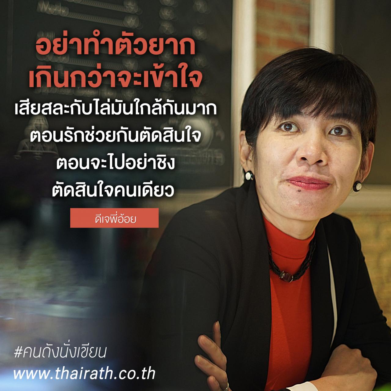 ยังคงเดินหน้าเป็นผู้ฟังที่ดีต่อไป ในยุคที่มีแต่คนพูด แสดงความคิดเห็นในหลายๆ เรื่องแม้ว่าบางทียังไม่ได้เห็นด้วยซ้ำ ผ่านปลายนิ้วหลังแป้นคีย์บอร์ด ต้องเตือนตัวเองเอาไว้ อย่าตามติดชีวิตใครๆ จนเผลอใช้สิทธิ์ในชีวิตเขามากเกินไป ..ในพื้นที่ตรงนี้ เรายังคงเรียนรู้วิธีคิดจากชีวิตใครๆ เจอกันในไทยรัฐออนไลน์ทุกอาทิตย์แบบนี้เท่าที่เวลายังเป็นของเรานะคะ