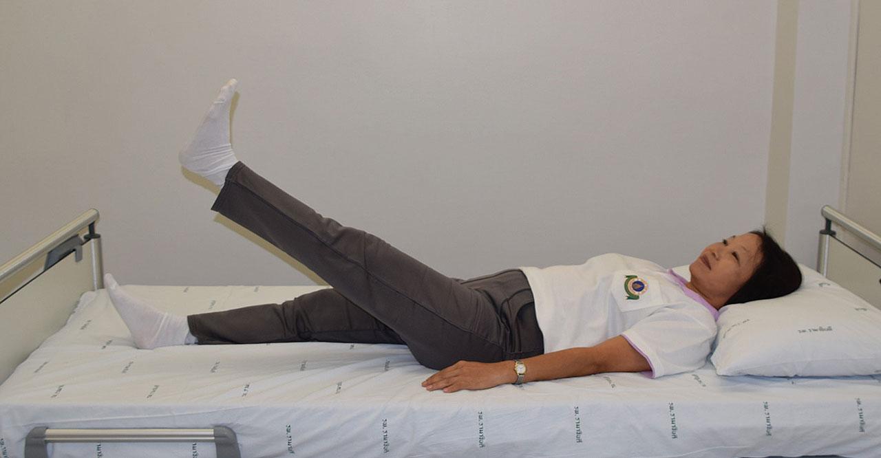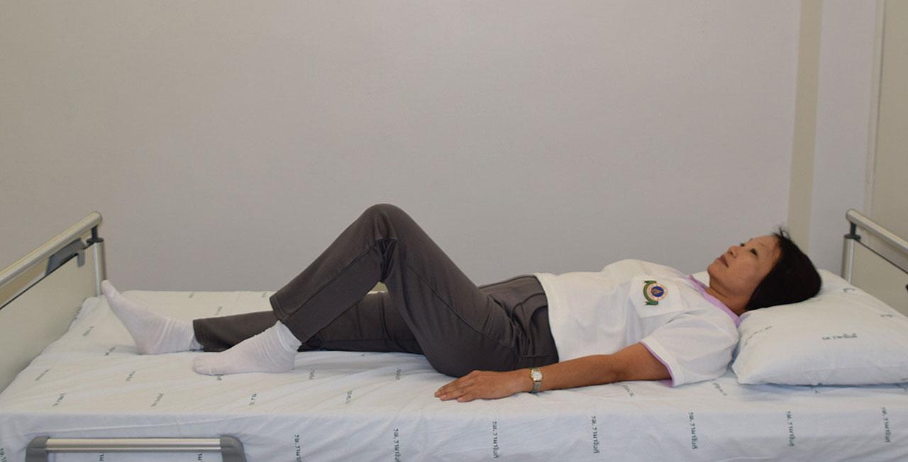 4. หลังนับ 1-10 ทิ้งขาลงบนที่นอนไม่ต้องเกร็งเข่าไว้