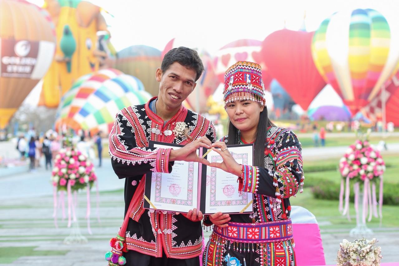 นอกจากนี้ ยังมีคู่รักชาวไทยภูเขาเผ่าลาหู่ (มูเซอ) คือ นายซามัน ดาลียา และ น.ส.แสงรวี จะแล แฟนสาว ซึ่งเป็นชาวไทยภูเขาชาวเชียงราย ก็ได้มาจดทะเบียนสมรสหมู่ในครั้งนี้ด้วย โดยทั้งสองแต่งตัวในชุดประจำเผ่า ซึ่งทั้งคู่เผยว่า "ดีใจและมีความสุขมากที่ได้ร่วมกิจกรรมบอลลูน ขอบคุณสิงห์ปาร์คที่ทำให้ได้มีโอกาสดีๆ ในชีวิต"