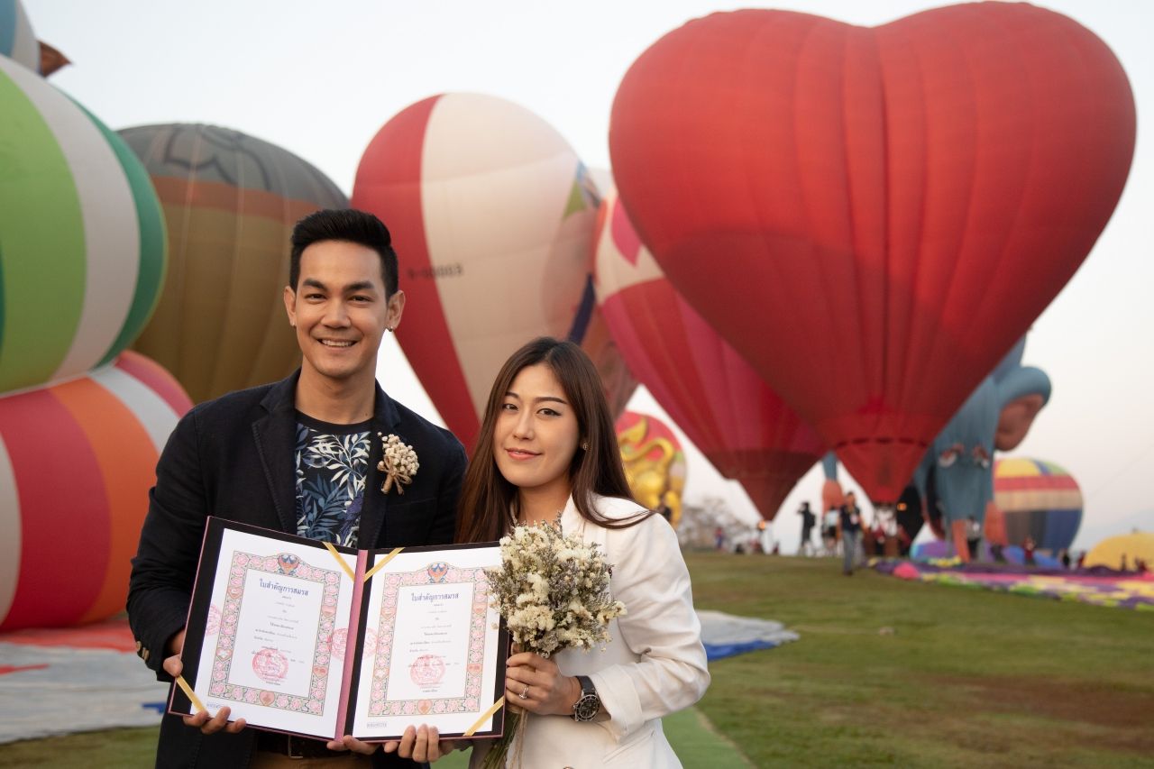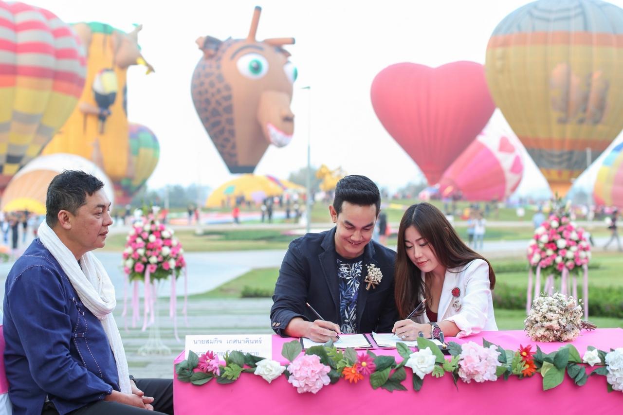 โดยกิจกรรม "Balloon Love จดทะเบียนสมรส-บอกรักลอยฟ้า" ในครั้งนี้ ได้เริ่มพิธีจดทะเบียนสมรสหมู่ขึ้น เมื่อเวลา 07.00 น. ของวันที่ 14 กุมภาพันธ์ โดยได้มีจำนวนคู่รักทั้ง 20 คู่ เดินทางมาร่วมจดทะเบียนสมรสและพากันเกี่ยวก้อยจูงมือ เดินขึ้นบอลลูนไปบอกรักกันบนท้องฟ้า และชมทัศนียภาพที่แสนจะสวยงาม แบบพาโนรามา 360 องศา ท่ามกลางอากาศที่เย็นสบายสดชื่น บอกเลยว่างานนี้มีแต่ความโรแมนติกเกิดขึ้น แถมยังอบอวลไปด้วยความสุข รอยยิ้ม และความรักของเหล่าบรรดาคู่รัก ซึ่งถือเป็นอีกหนึ่งโมเมนต์ดีๆ ที่น่าจดจำเป็นที่สุด