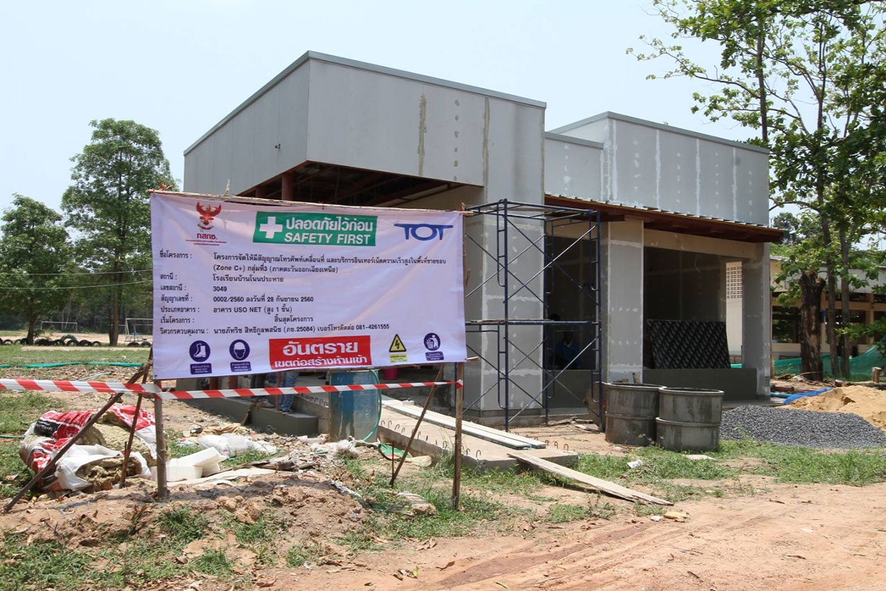 ระหว่าง วันที่ 25 – 27 เมษายน 2562 น.อ.สมศักดิ์ ขาวสุวรรณ์ รองปลัดกระทรวงดิจิทัลเพื่อเศรษฐกิจและสังคม และกรรมการ ทีโอที และ นางศิริพร เหลืองนวล กรรมการ ทีโอที เป็นผู้แทนคณะกรรมการ ทีโอที พร้อมผู้บริหารระดับสูง และทีมงานส่วนกลาง/พื้นที่ ร่วมลงพื้นที่กำกับติดตามความคืบหน้า อย่างเข้มข้นโครงการจัดให้มีสัญญาณโทรศัพท์เคลื่อนที่และบริการอินเทอร์เน็ตความเร็วสูงในพื้นที่ชายขอบ (Zone C+) (USO) พบว่ามีความคืบหน้าการสร้างอาคาร USO Net" ที่แล้วเสร็จตามเป้าหมายเป็นที่น่าพอใจ พร้อมเร่งส่วนที่เหลือเพื่อให้งานสร้างอาคารศูนย์ USO สำเร็จสามารถส่งมอบโครงการได้ตามกำหนดโดยเร็ว