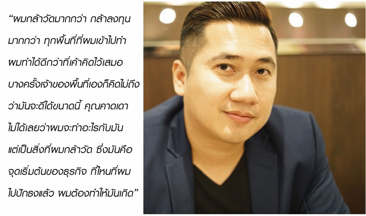 แต่การที่พ่อค้า-แม่ค้าจะให้เค้าไปเช่ากับห้างใหญ่ๆ เองก็เป็นไปได้ยาก บางเจ้าก็เป็นร้านในตลาดเล็กๆ แต่ของเค้าเด็ดจริง อร่อยจริง และทุกคนก็รู้ว่าเป็นไปไม่ได้ว่าจะขายผัดไทยจานละ 40-50 บาท อยู่ใจกลางเมือง ขนาดอยู่ในฟู้ดคอร์ทยังขาย 80-120 เลยครับ ผมก็เห็นพื้นที่ในหลายๆ ที่ที่มันมีศักยภาพ เจ้าของพื้นที่เองเค้าอาจจะนึกไม่ถึง แต่ผมคิด-แล้วผมก็ทำ มันเลยเป็นจุดเริ่มต้นของธุรกิจอีเวนต์ ตลาดสตรีทฟู้ดไทย