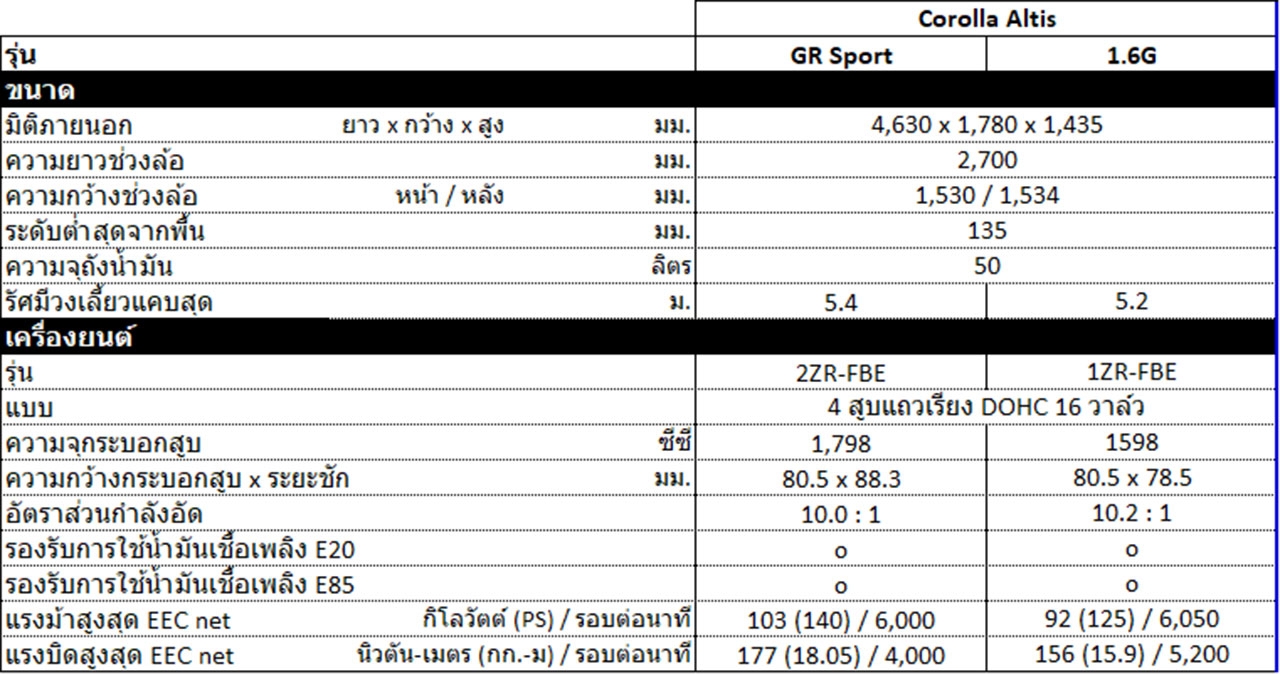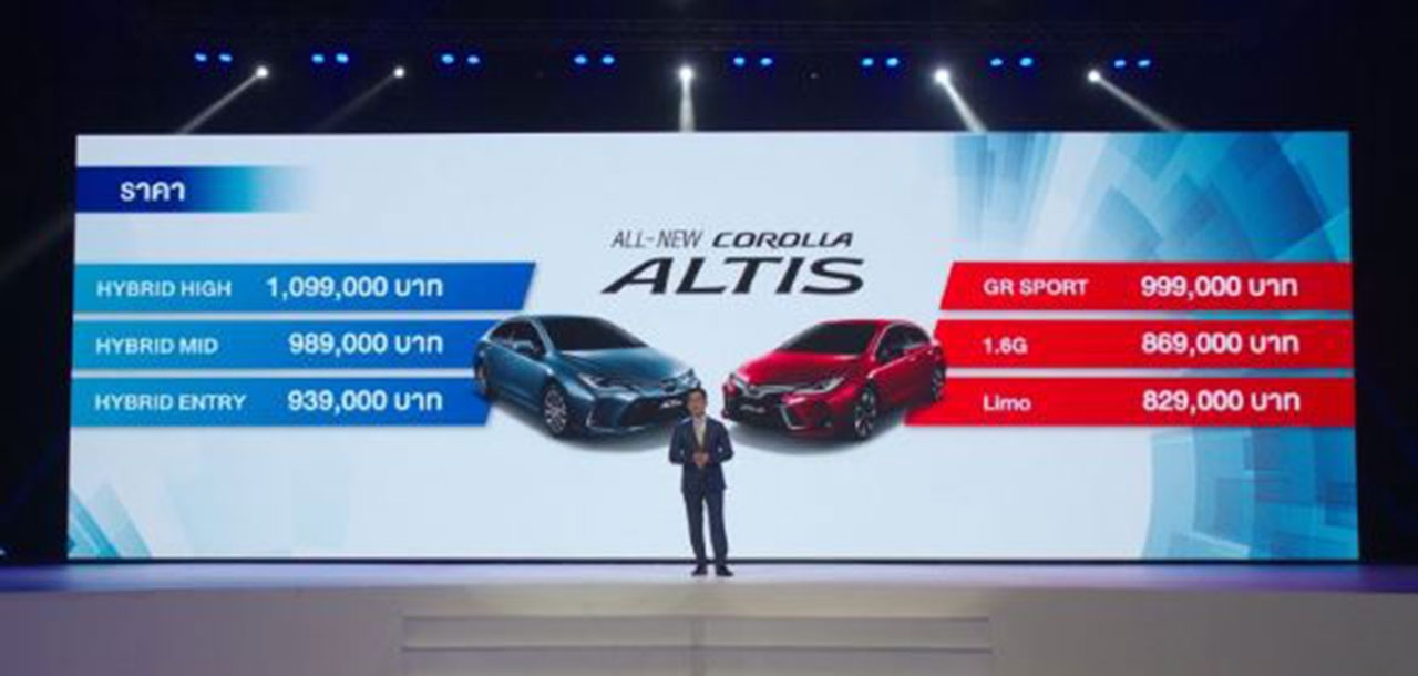 นอกจากนี้ ผมมีความยินดีที่จะแนะนำ รุ่นสปอร์ตใหม่ “Corolla Altis GR-Sport” ที่พัฒนาภายใต้แนวคิด“ Gazoo Racing Sport” โดยรุ่น GR-Sport นี้จะมาพร้อมกับแพ็คเกจพิเศษซึ่งจะเพิ่มแอโรไดนามิกและจะมอบความตื่นเต้นเร้าใจในการขับขี่สูงสุดให้กับลูกค้าของเรา