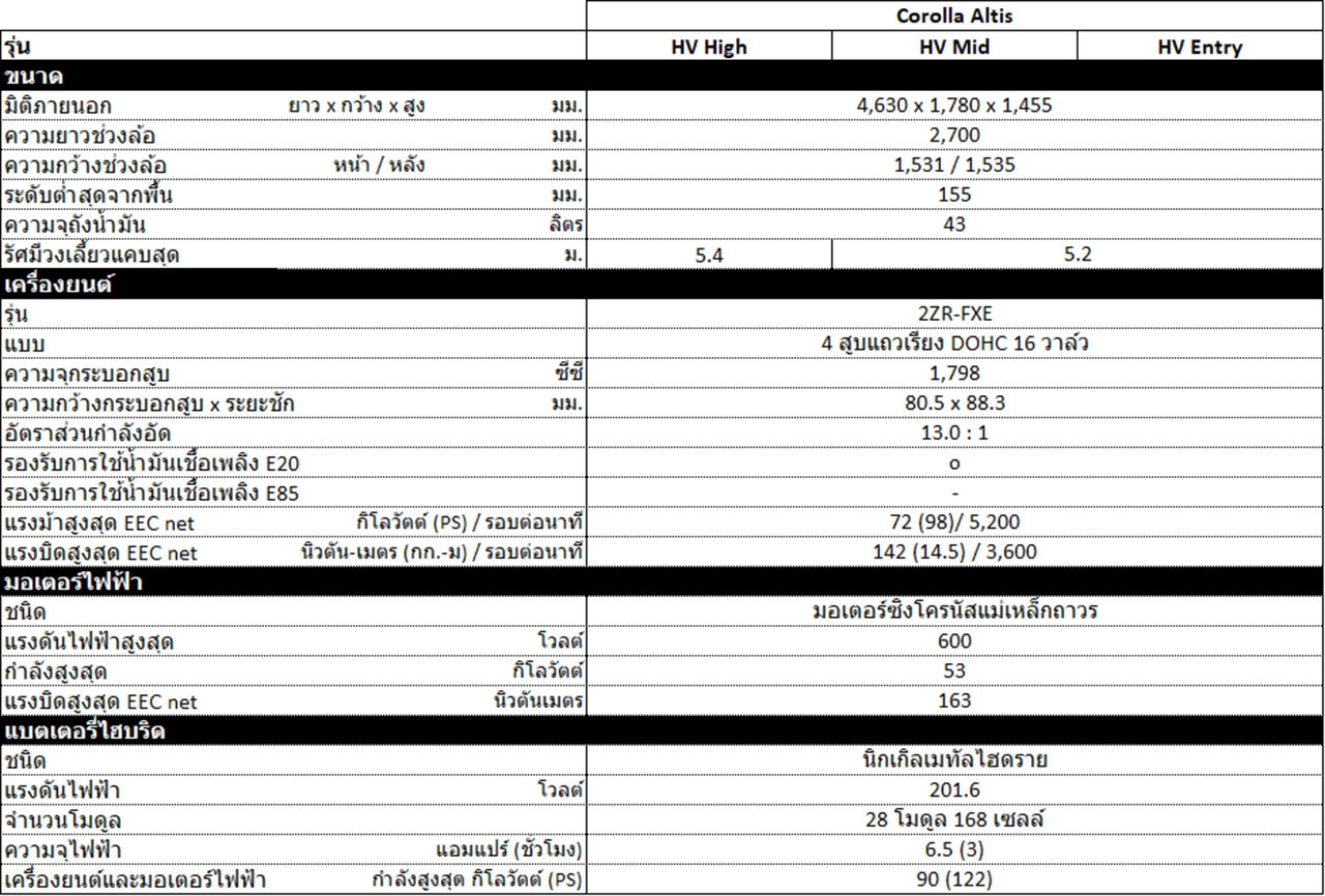 และในโคโรลล่า อัลติส รุ่นใหม่นี้ ยังมาพร้อมกับเครื่องยนต์ไฮบริดเจนเนอเรชั่นที่ 4 ซึ่งมีประสิทธิภาพในการประหยัดน้ำมันสูงสุด ด้วยอัตราการสิ้นเปลืองน้ำมันที่ 23 กิโลเมตรต่อลิตร โดยมีให้เลือกถึงสามรุ่น เรามีความยินดีที่จะแจ้งให้ทราบว่า รถรุ่นนี้ถือเป็นรถยนต์ไฟฟ้าไฮบริดแบบเต็มรูปแบบคันแรกในตลาดนี้ สำหรับประเทศไทย และเมื่อไม่นานมานี้ เราเพิ่งฉลองความสำเร็จ 10 ปีรถยนต์ไฟฟ้าไฮบริดในประเทศไทย พร้อมกับการเปิดตัวโครงการการบริหารจัดการแบตเตอรี่รถยนต์ไฟฟ้าไฮบริดใช้แล้วแบบครบวงจร โตโยต้า เราขอแสดงความขอบคุณรัฐบาลไทย ที่มีนโยบายในการส่งเสริมยานยนต์ที่เป็นมิตรต่อสิ่งแวดล้อม ความรับผิดชอบของเราในครั้งนี้จะส่งผลดีต่อการใช้รถยนต์ไฟฟ้าไฮบริด รวมไปถึงการเดินทางสารธารณะอีกด้วย เราเชื่อว่าการแพร่หลายของเทคโนโลยีไฮบริดไฟฟ้าถือเป็นก้าวแรกที่สำคัญต่อการมุ่งไปสู่การขยายตัวของรถยนต์ไฟฟ้าในอนาคต