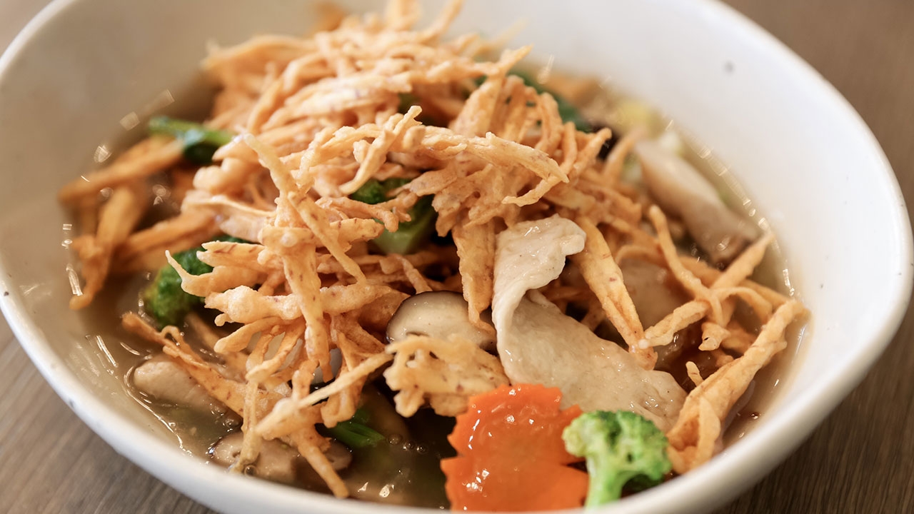 เปลี่ยนบรรยากาศมาลิ้มรสชาติสไตล์ไทยกันบ้างกับ “Café Pla” (คาเฟ่ ปลา) ที่รังสรรค์เมนูน่าตาชวนรับประทานอย่าง ก๋วยเตี๋ยวต้มยำทรงเครื่องเจ, ราดหน้าเผือกทอดเจ, สปาเก็ตตี้ปลาเค็มเจ, เผือกทอดเต้าหู้เจ, สลัดเผือกทอดเจ ก่อนจะปิดท้ายด้วยของหวานแสนอร่อย อย่าง มะม่วงปั่นสาคู เป็นต้น ส่วนสายเฮลท์ตี้ ต้องมาที่ร้าน “Charna” (ฌานา) คัดสรรวัตถุดิบคุณภาพ โดยอาหารเจแบบปลอดสารของที่นี่ ได้แก่ กล้วยไข่บวชชี, น้ำเต้าหู้ออร์แกนิค เกล็ดหิมะ, สลัดเห็ดย่าง ซอสงาขาว, สลัดผักกรอบ ซอสงาขาว , หมูม้ง และชุดผักสวนครัว แต่เด็ดสุดคงต้องยกให้ซุปรื่นรมย์ ที่โชยกลิ่นหอมทั้งผักและสมุนไพร อร่อยและได้ประโยชน์จริงๆ