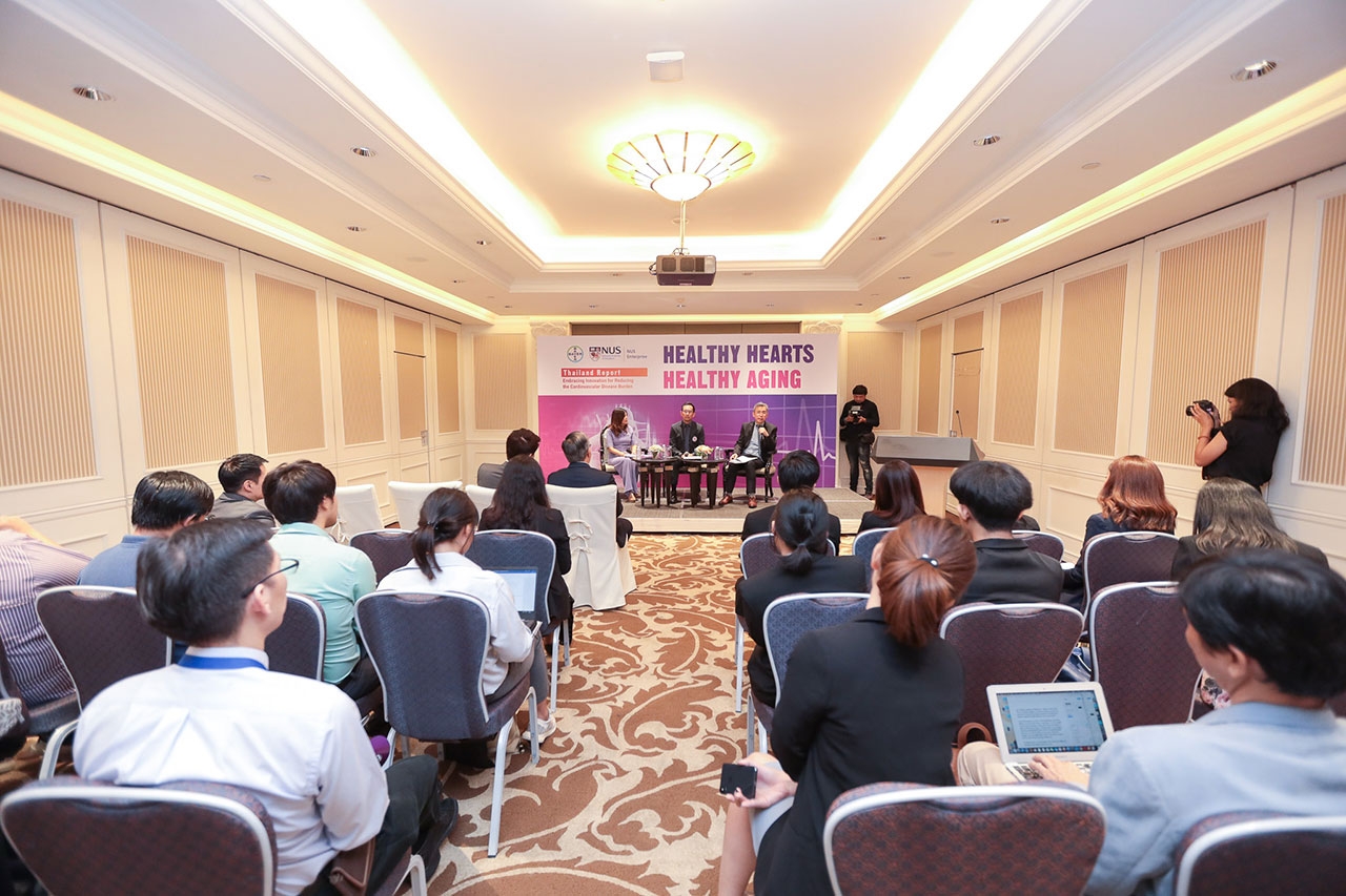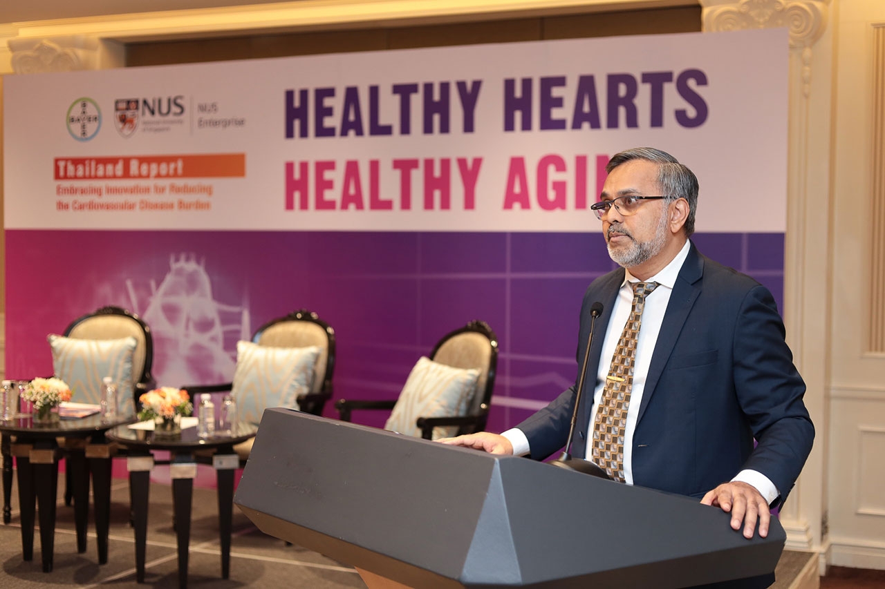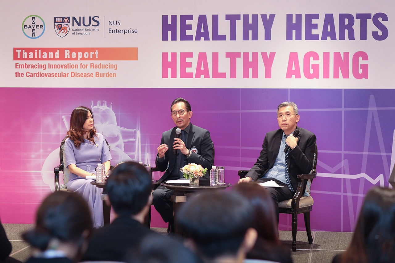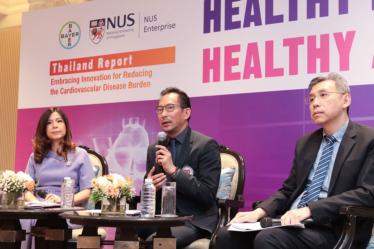 ซึ่งเป็นข้อมูลที่ได้ถูกรวบรวมไว้ในรายงาน Healthy Hearts, Healthy Aging ฉบับประเทศไทย โดยรายงานฉบับนี้เป็นส่วนหนึ่งของโครงการการจัดทำรายงาน Healthy Hearts, Healthy Aging ในระดับภูมิภาคเอเชีย แปซิฟิก ดำเนินการจัดทำโดยไบเออร์และ NUS Enterprise หน่วยงานในสังกัดมหาวิทยาลัยแห่งชาติสิงคโปร์ (National University of Singapore : NUS) โดยมีนาย ริอาซ บัคซ ผู้จัดการทั่วไป แผนกฟาร์มาซูติคอล บริษัท ไบเออร์ ไทย จำกัด กล่าวต้อนรับผู้เข้าร่วมงานเสวนา แพทย์ด้านหัวใจและหลอดเลือดและสื่อมวลชน