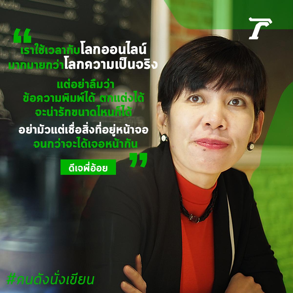 ต่อให้วันนี้เราใช้เวลากับโลก online มากมายกว่าโลกความเป็นจริง แต่อย่าลืมว่าข้อความพิมพ์ได้ ตกแต่งได้ จะน่ารักขนาดไหนก็ได้ อย่ามัวแต่เชื่อสิ่งที่อยู่หน้าจอ จนกว่าจะได้เจอหน้ากัน ขนาดเห็นหน้ากันทุกวัน รู้จักกันนานยังไม่ได้แปลว่าเรารู้จักกันดีเลย นับประสาอะไร กับโลกที่เราปั้นให้เราเป็นอะไรก็ได้ สุดท้ายเราได้รับผิดชอบความรู้สึกของใครบ้าง