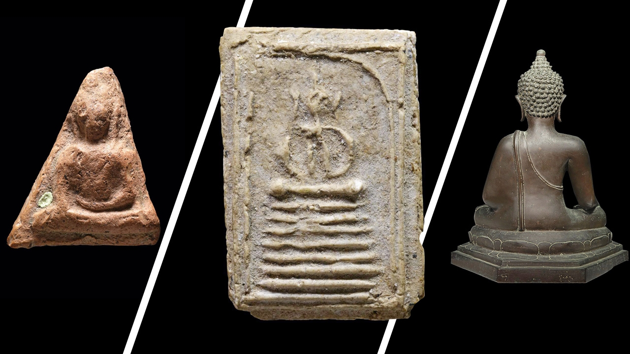 ลักษณะเป็นพระพิมพ์เนื้อดินเผา รูปทรงสามเหลี่ยม ด้านหน้าเป็นองค์พระนั่งปางมารวิชัย พุทธศิลป์สมัยอยุธยา...