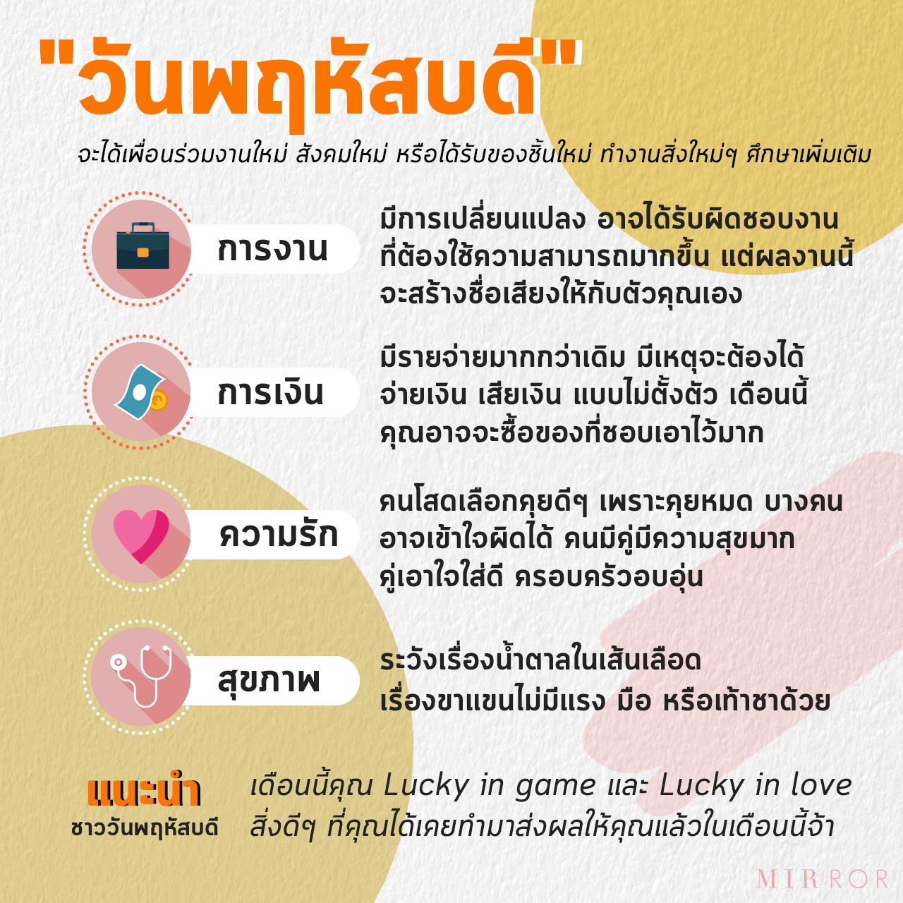 เดือนนี้คุณ Lucky in game และ Lucky in love เลยค่ะ สิ่งดีๆ ที่คุณได้เคยทำมาส่งผลให้คุณแล้วในเดือนนี้จ้า