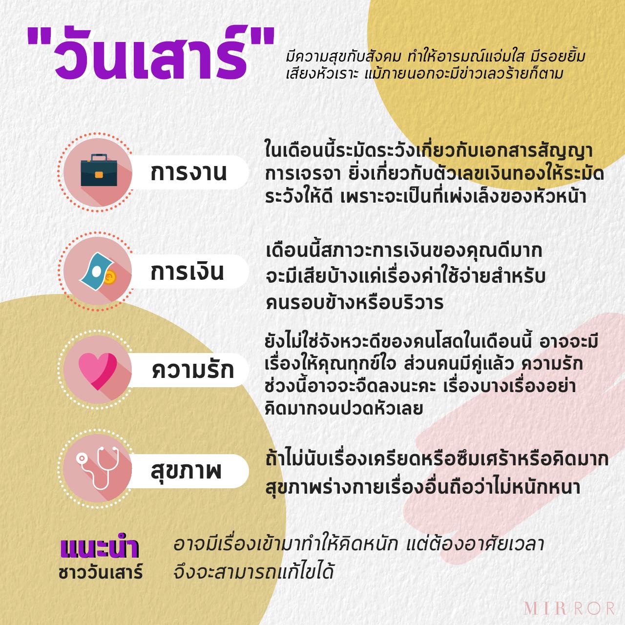ดวงคนเกิด "วันเสาร์" เดือนมีนาคม